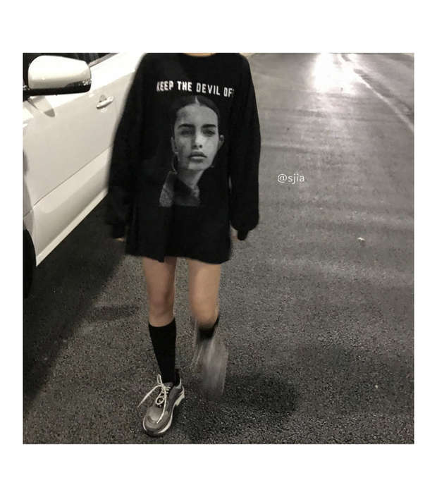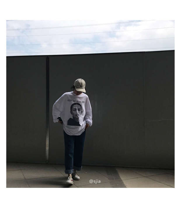 スタイルスタンダードトップス スプリングルーズ薄手ブラックTシャツ ロング レトロ 春物 長袖 ミドル丈 MONROE0449285