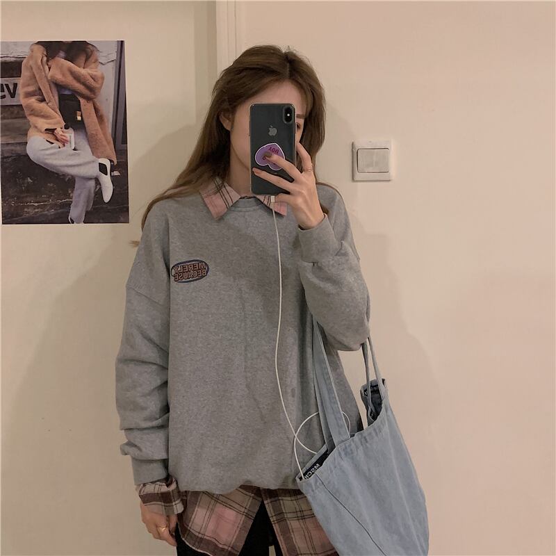 セーター ジャケット 秋物ルーズプリントトップス ロング オータム 長袖 ミドル丈 MONROE84905830828