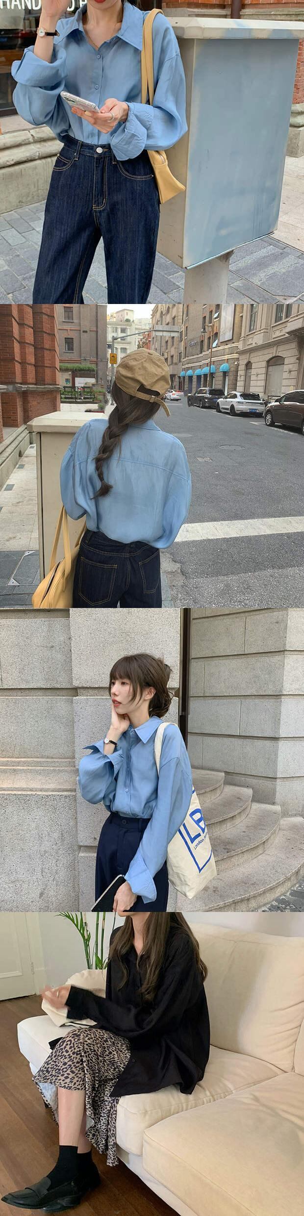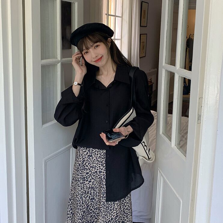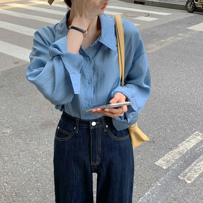 シャツ レディース秋物韓国ファッションスタイルソリッド カラートップス オータム ソリッドカラー ミドル丈 MONROE15717148467