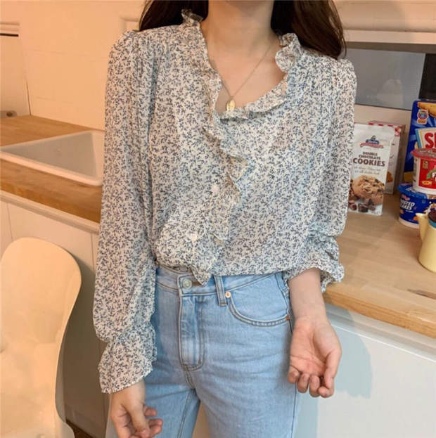 フローラルブラウス 秋物シャツ ルーズシフォンジャケット ロング オータム 花柄 長袖 MONROE5795440