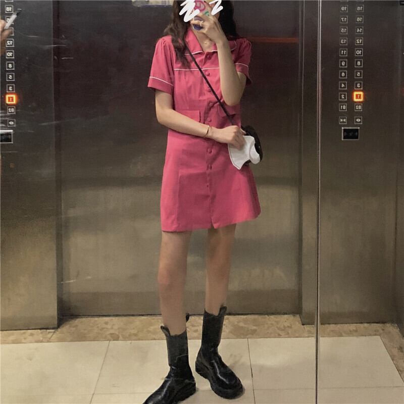 スタンダードスカート 夏服ルーズミニ ワンピースワンピースハイウェストウェスト レトロ 夏物 ウエスト ミドル丈 MONROE7415621