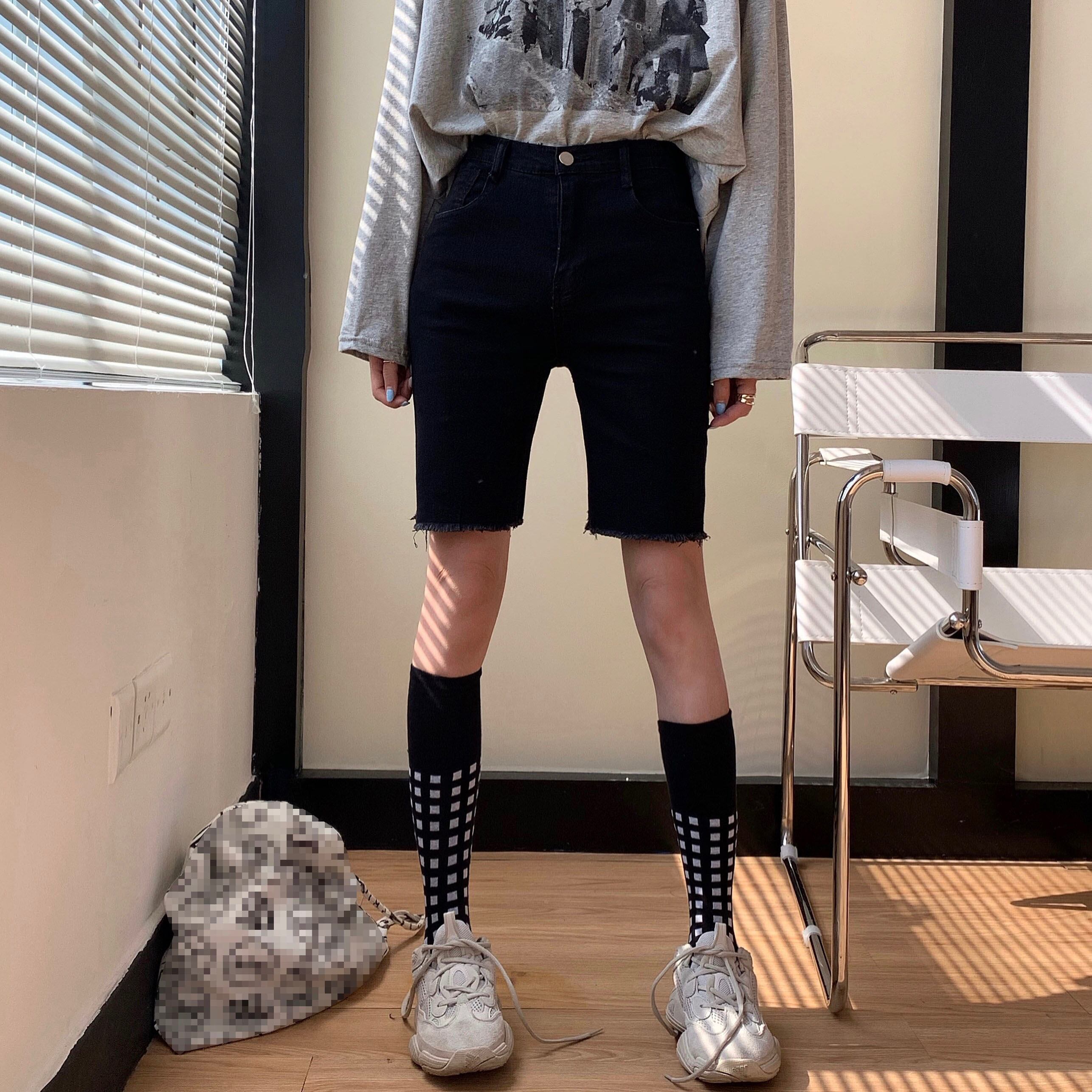ジーンズ ショーツ 夏服韓国ファッションブラックハイウェストウェストパンツ 夏物 スタイル ウエスト MONROE6631475