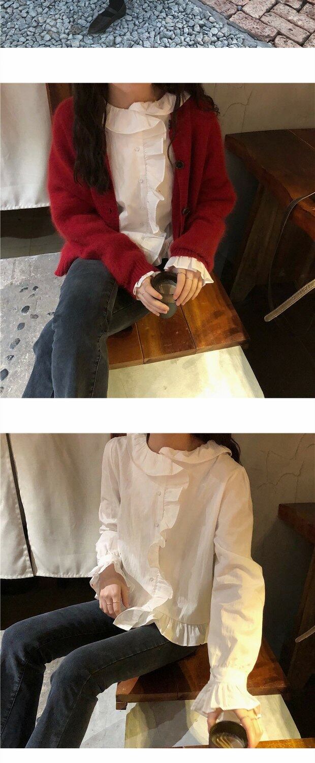 秋物韓国ファッションスタンダードカラーニットレースシャツ ロング レトロ オータム 長袖 MONROE1718465