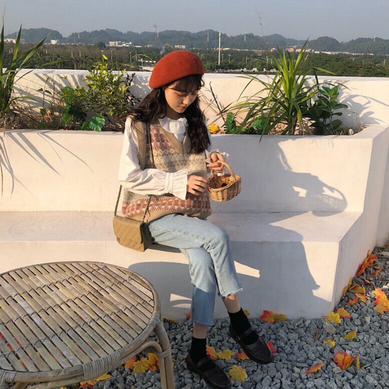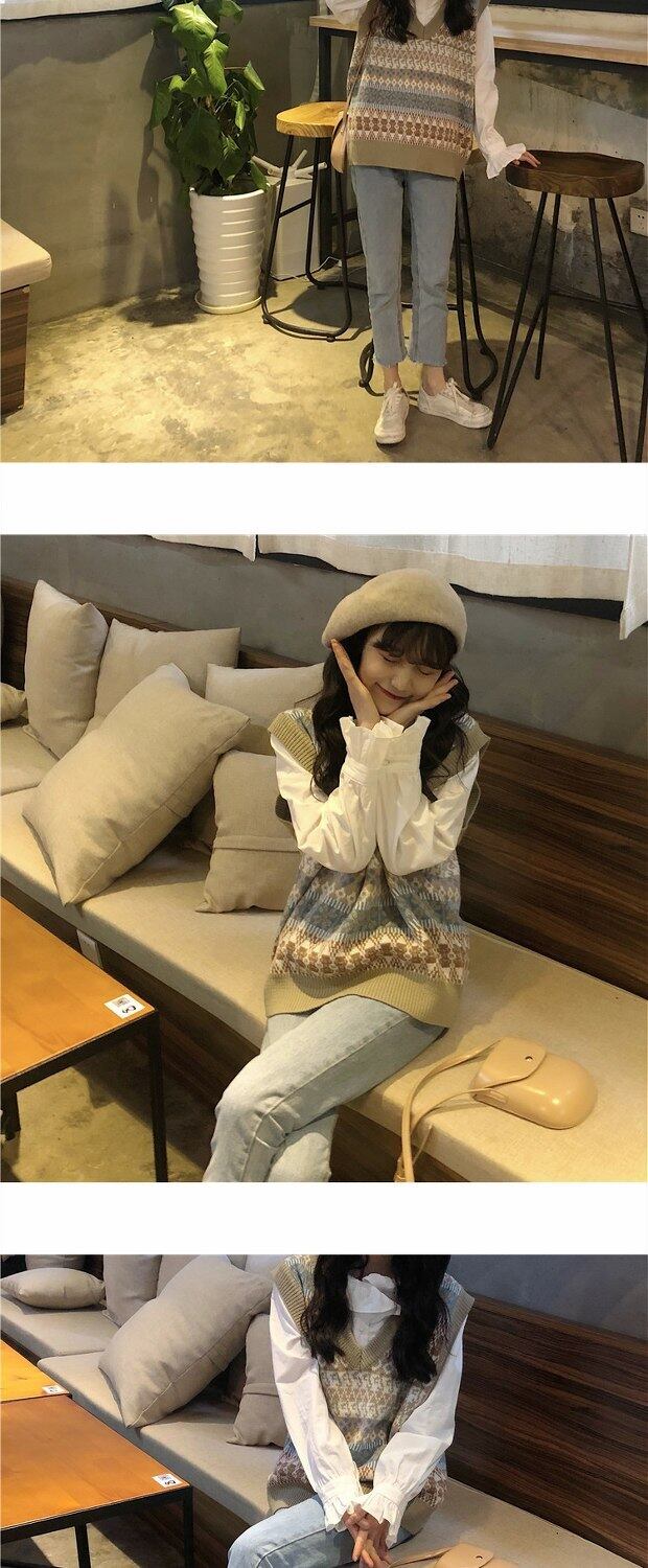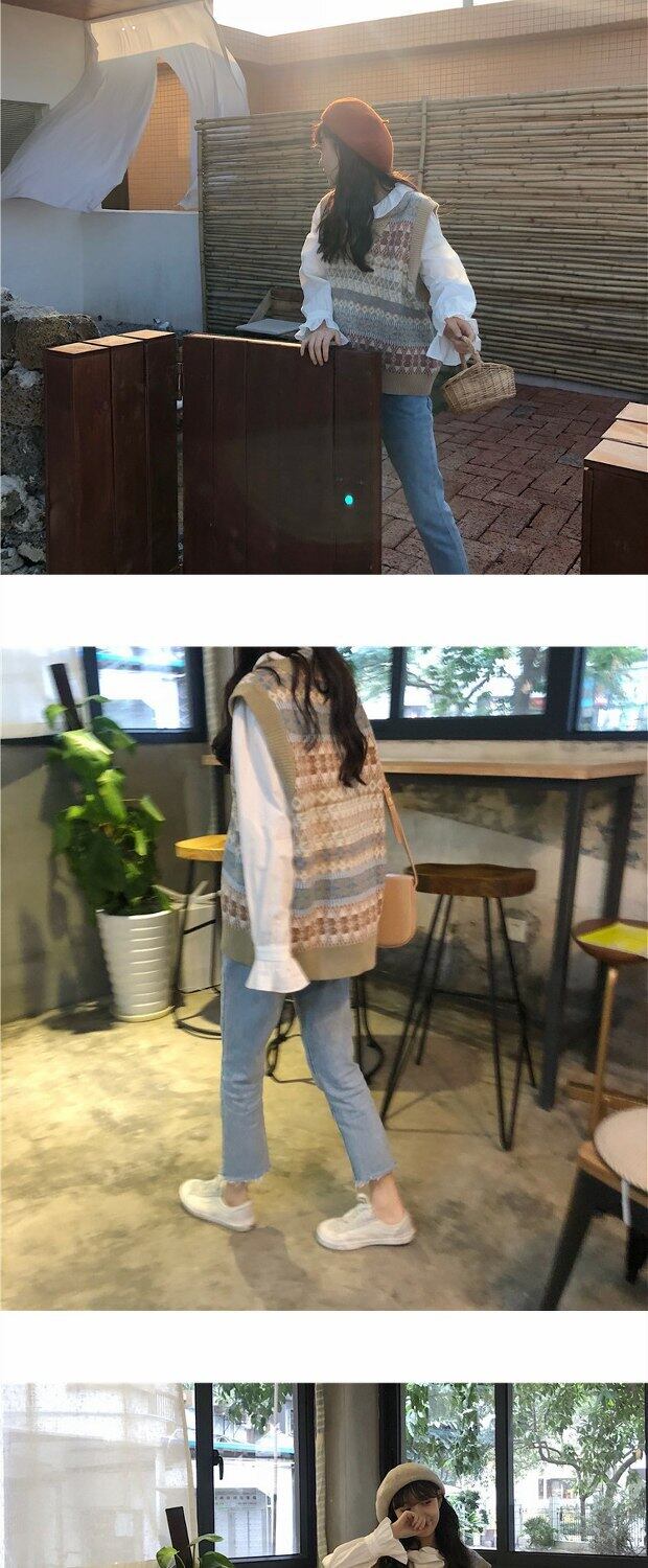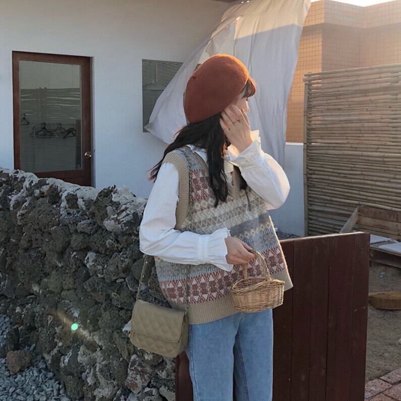 色:ニットベスト,遊び心のあるシャツ