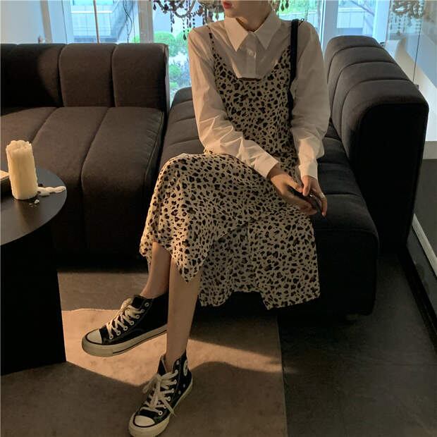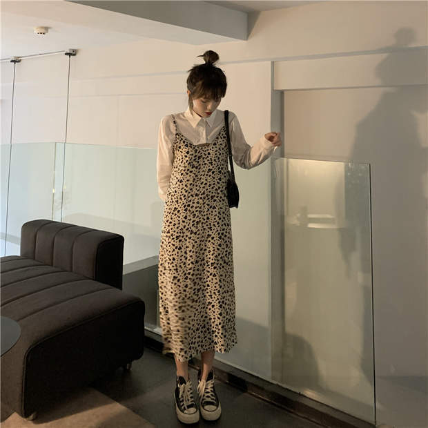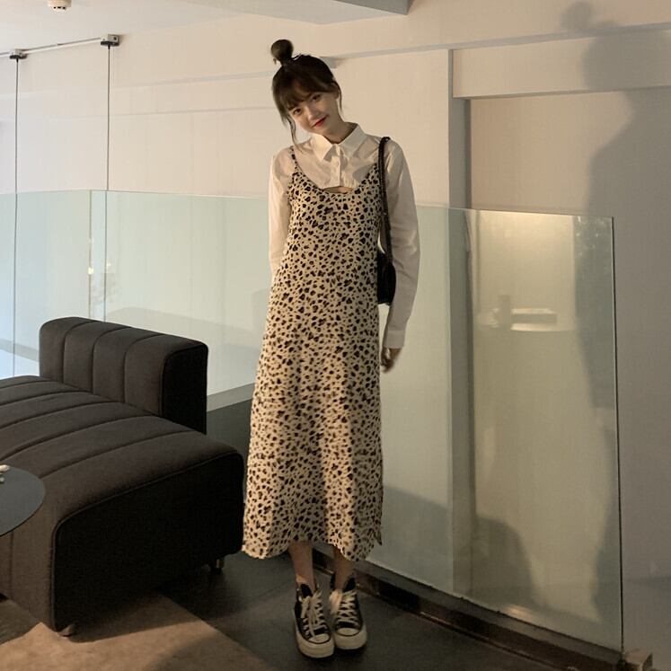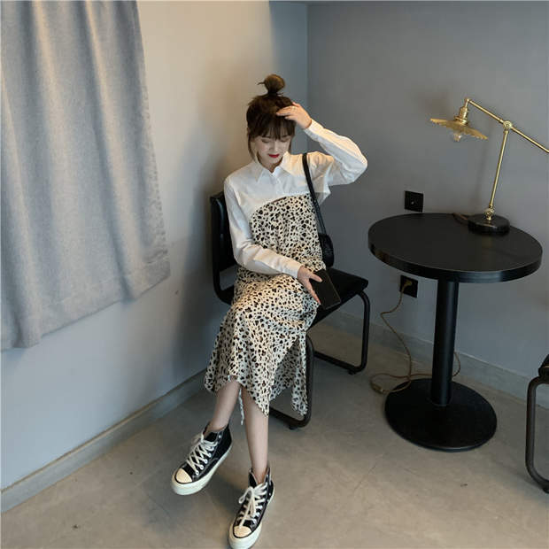 レオパードスカート 秋物ルーズハイウェストウェストスリムワンピースロング オータム ウエスト MONROE77986280859