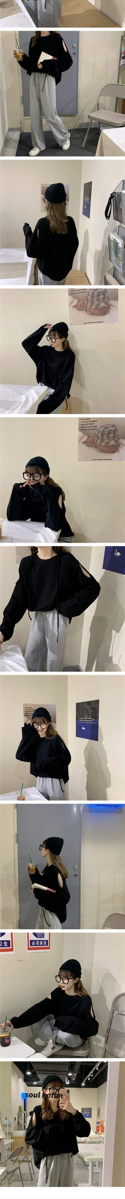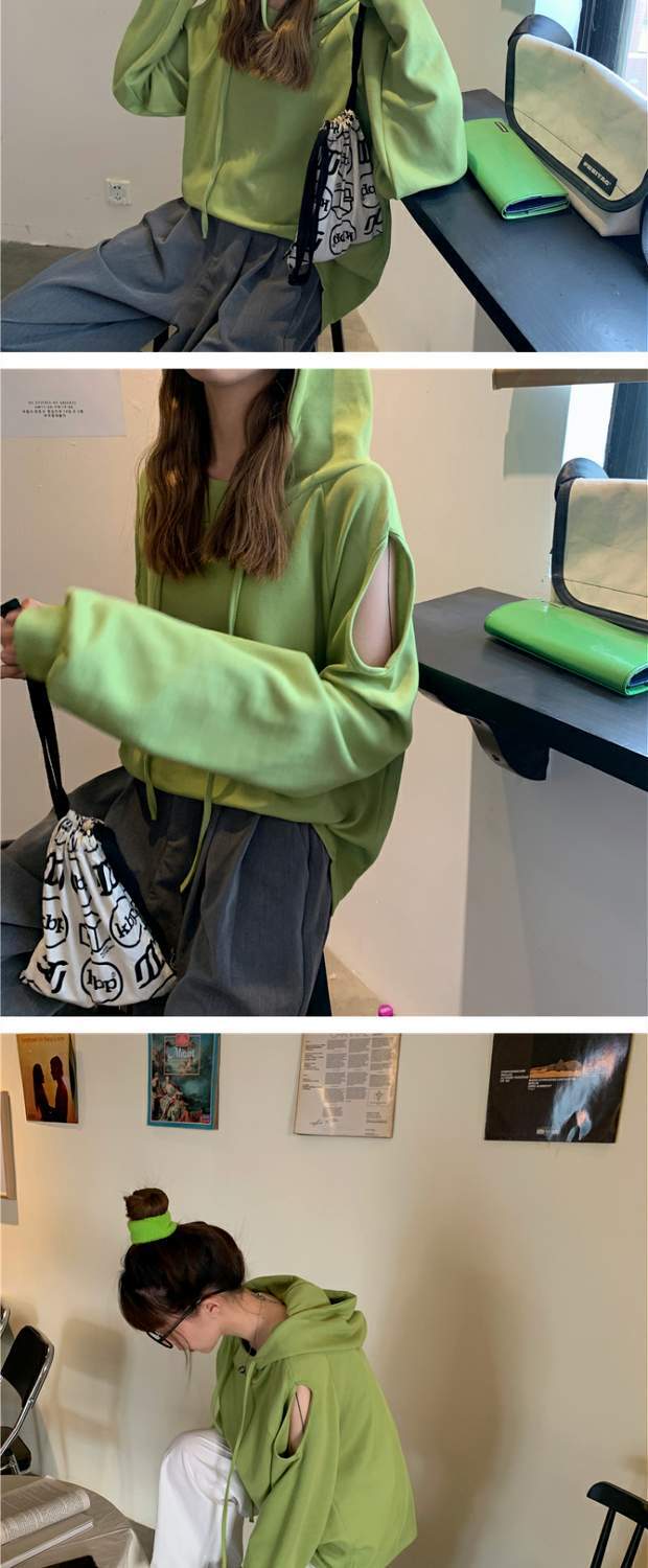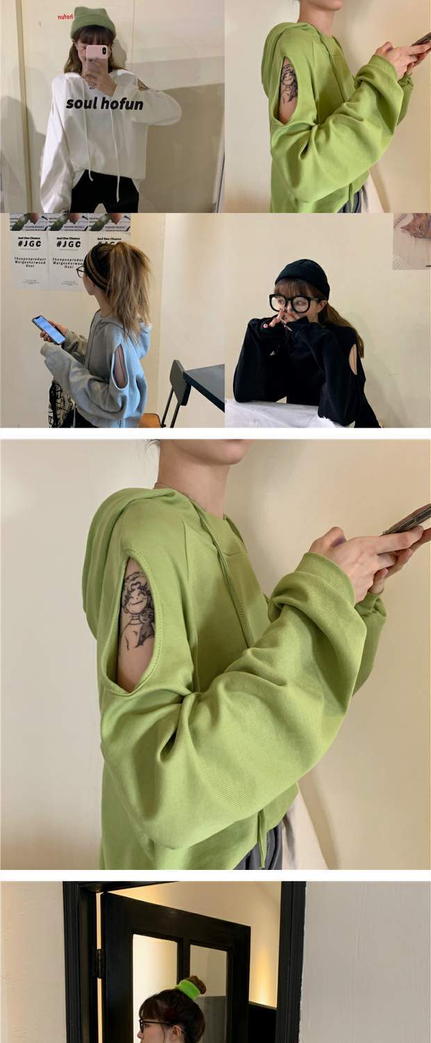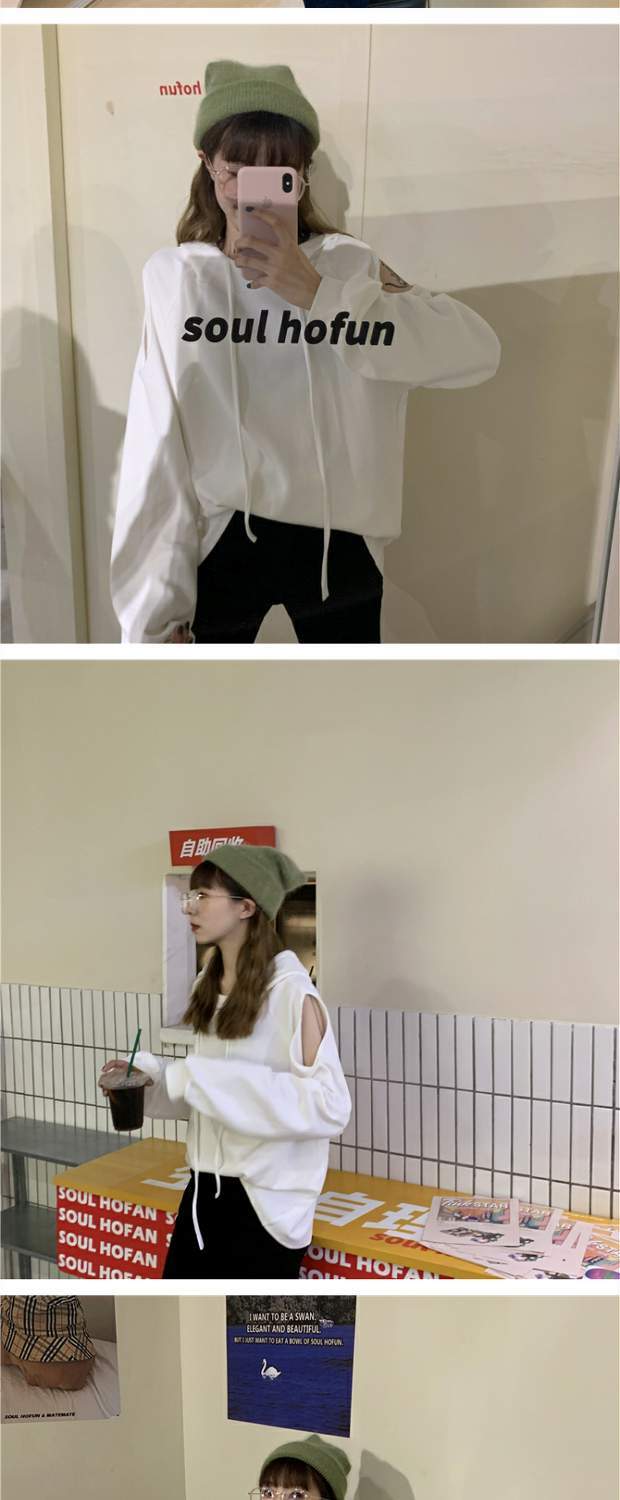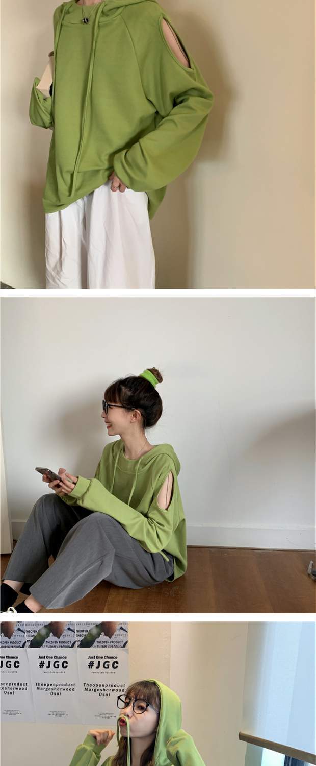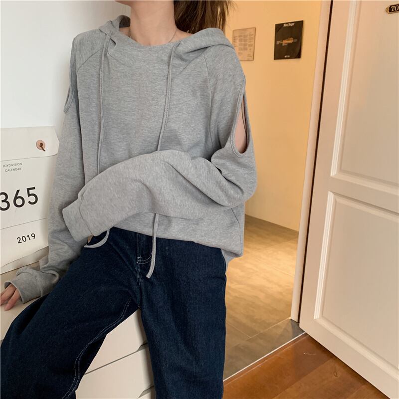 秋物韓国ファッショントレンドルーズストラップレス薄手フードセーター ジャケット カジュアルソリッド カラートップス ロング オータム ソリッドカラー スタイル 長袖 MONROE9267408