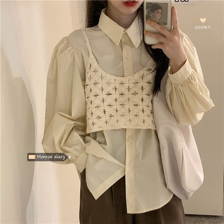 ホワイトシャツ ジャケット スプリングレディースパフスリーブスリーブ 春物 MONROE37715762710