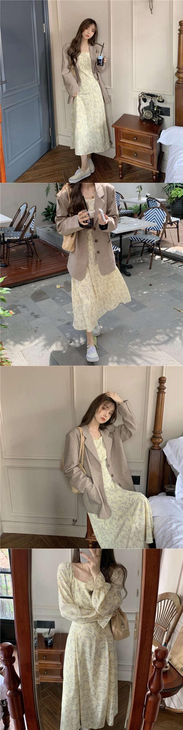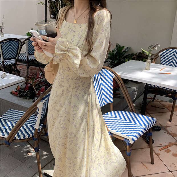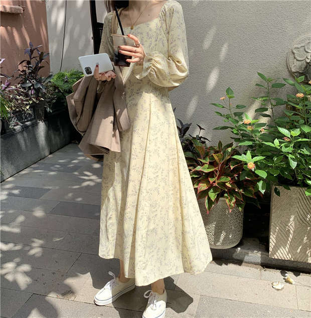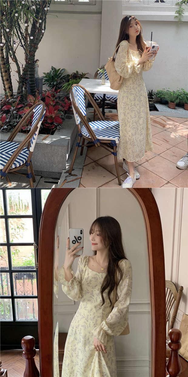 フローラルスカート 秋物ルーズワンピース ロング オータム 花柄 スクウェア 長袖 ミドル丈 MONROE81025202433