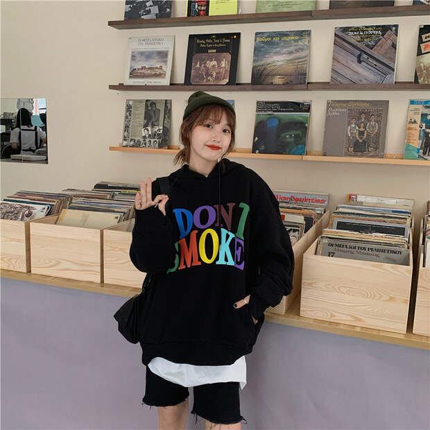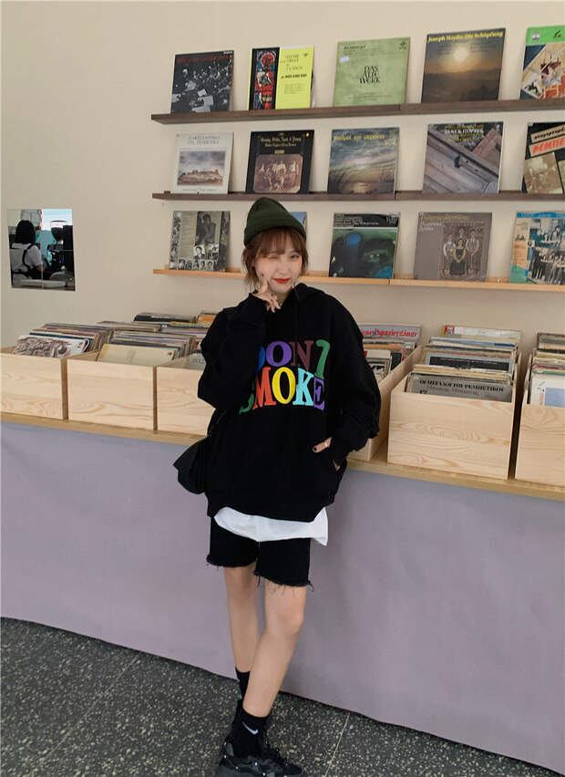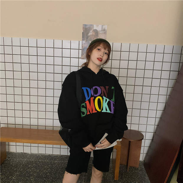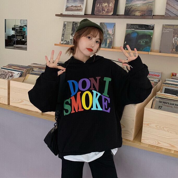 カラープリントセーター コート 秋物ルーズフードトップス ロング オータム 長袖 MONROE3008608019