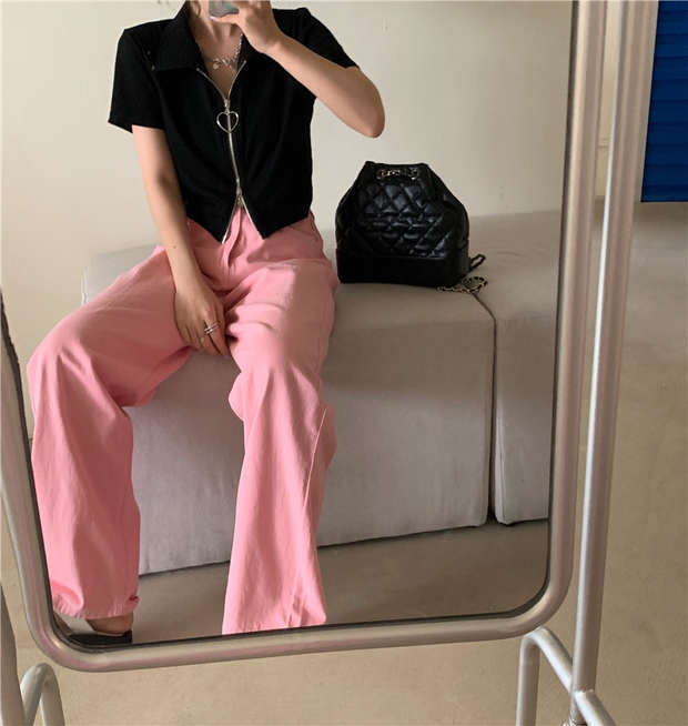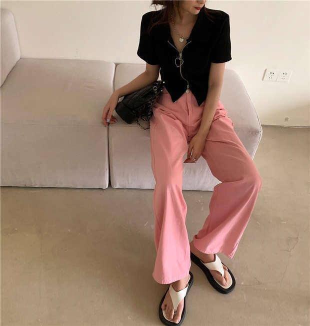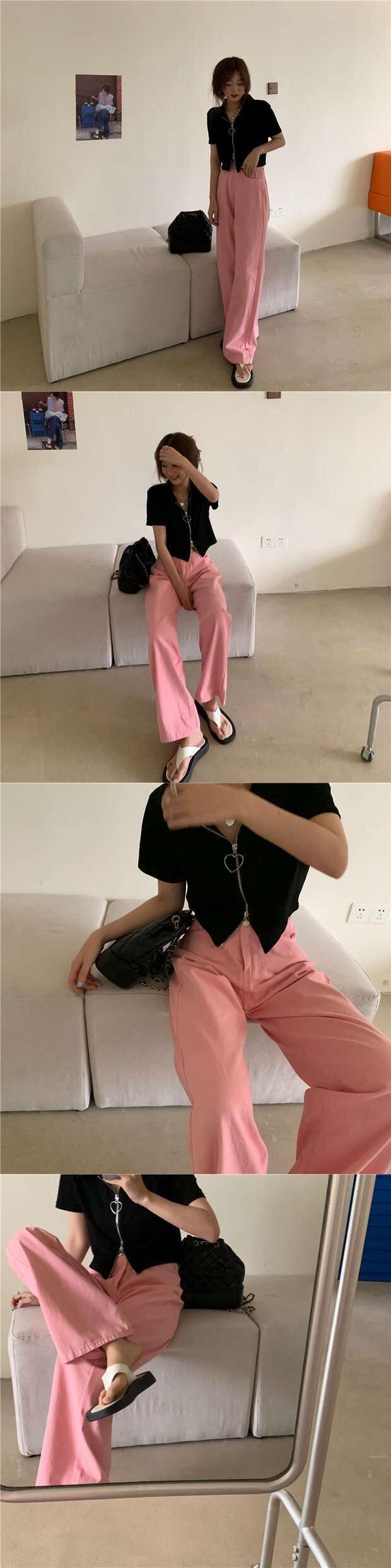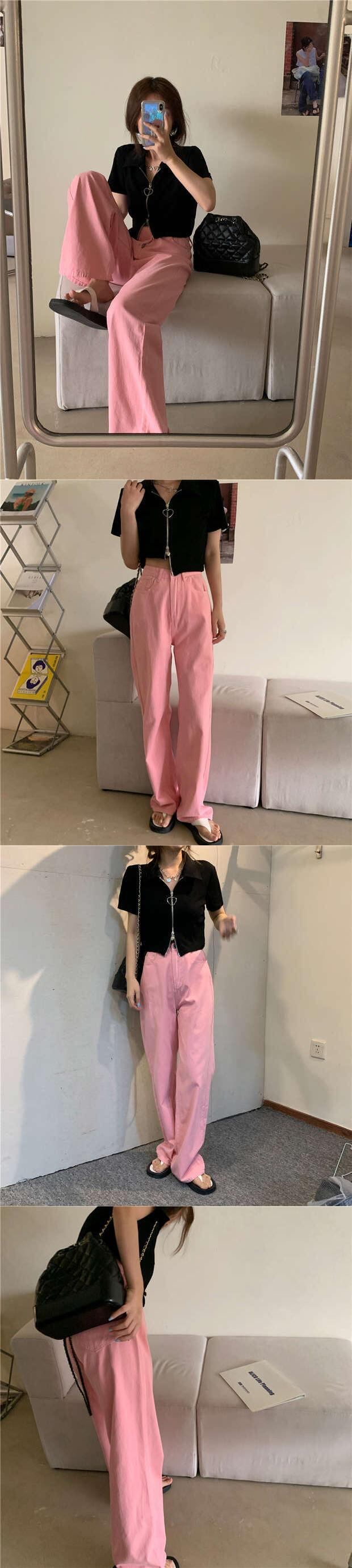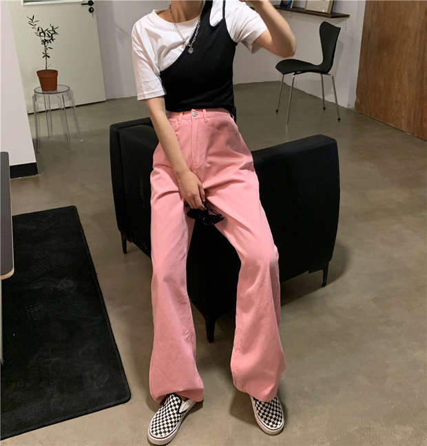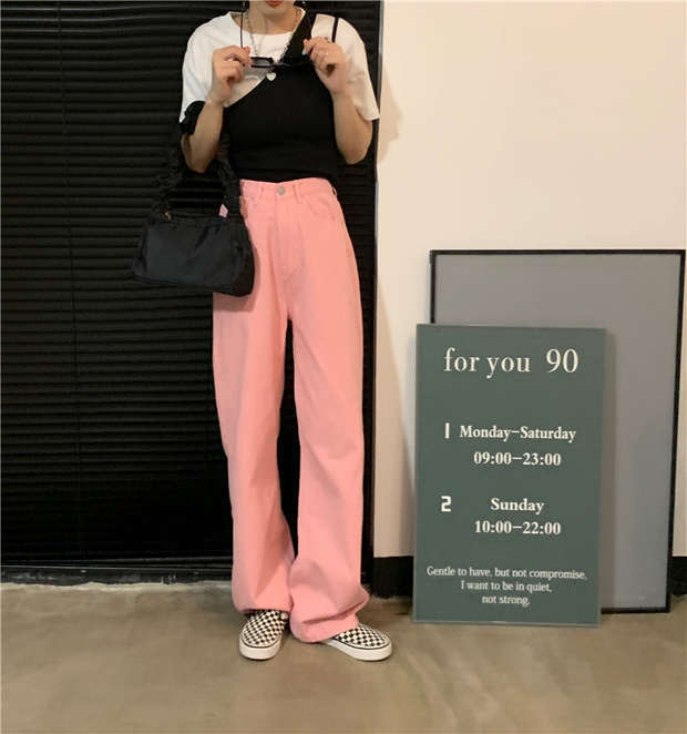 ルーズジーンズ 秋物カジュアルパンツ ハイウェストウェストワイドレッグ ピンク オータム ワイドパンツ ウエスト MONROE9064606694