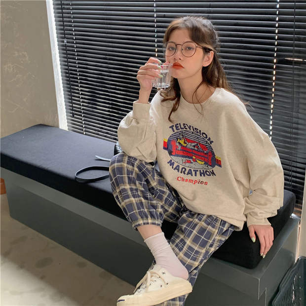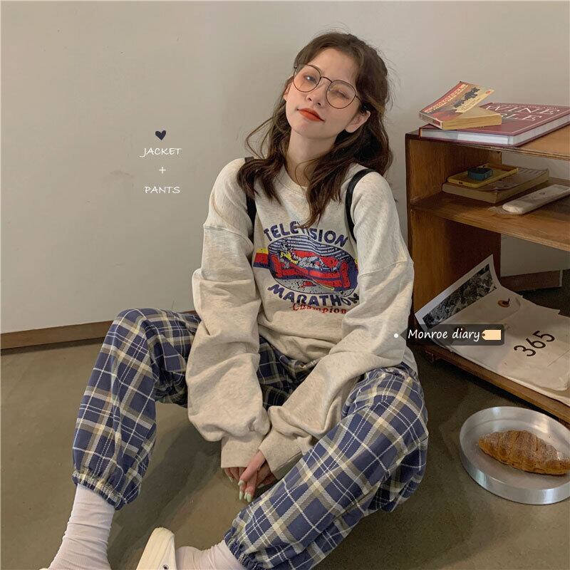 スタンダードプリントセーター ジャケット 秋物レディース韓国ファッションルーズ薄手トレンドトップス ロング レトロ オータム スタイル 長袖 MONROE12838431318