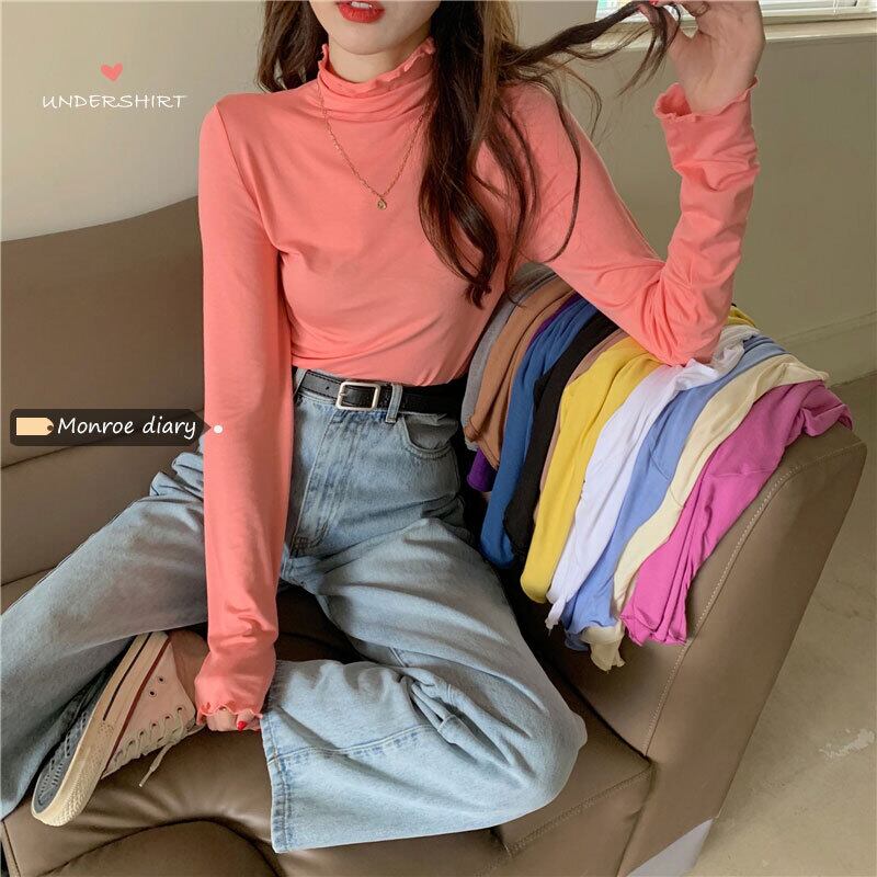 ソリッド カラーゆったりシャツ Tシャツスプリングウィンタースリム薄手トップス ロング 春物 冬物 ソリッドカラー 長袖 MONROE66388128550