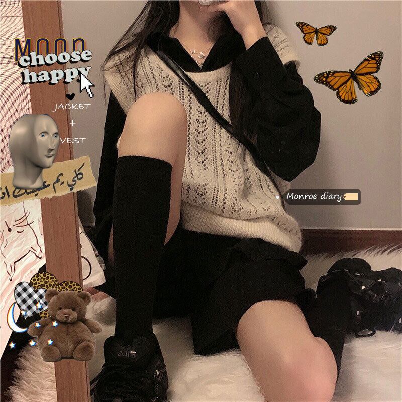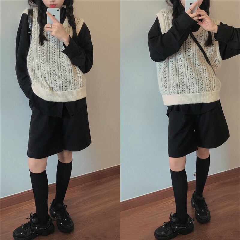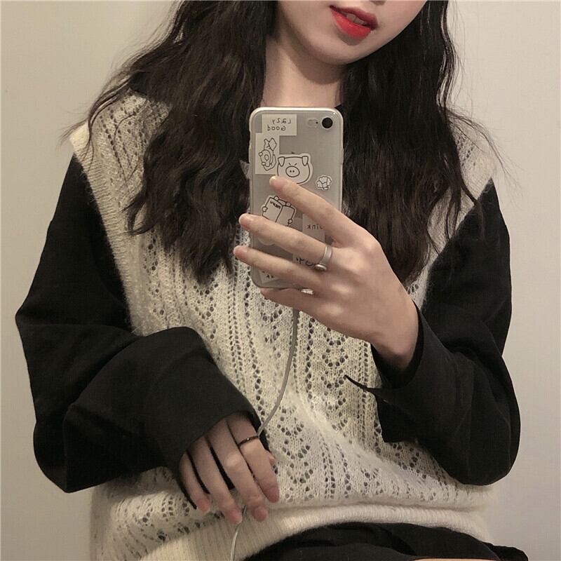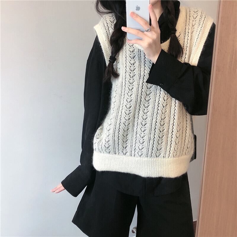 色:ニットベスト,黒いシャツ