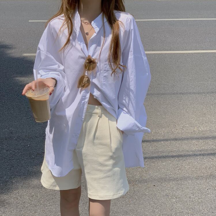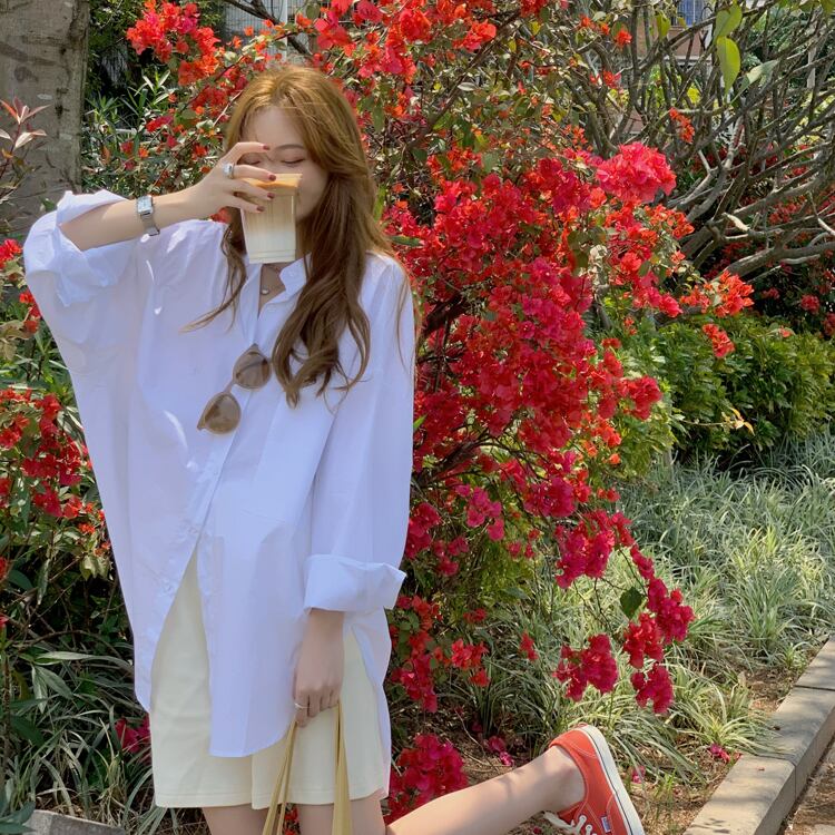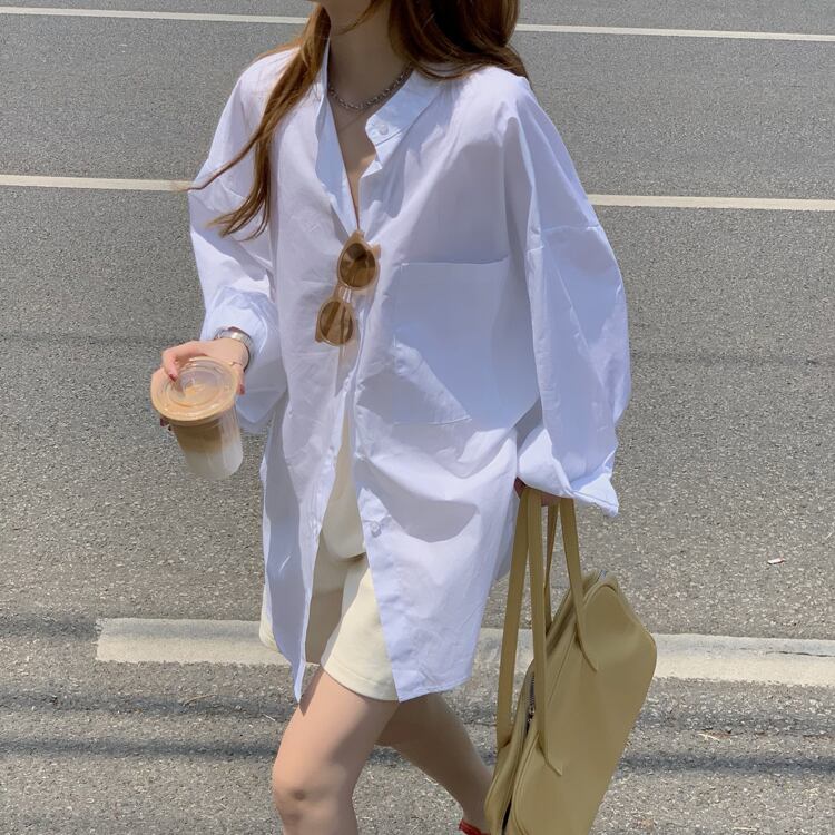スタイルルーズホワイトシャツ レディーススプリング薄手トップス 夏服ジャケット ロング 春物 夏物 長袖 MONROE23751752842