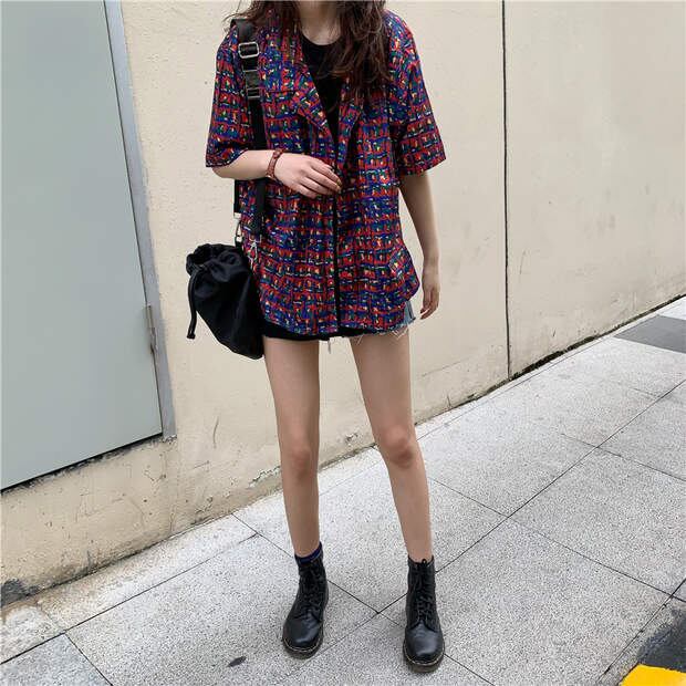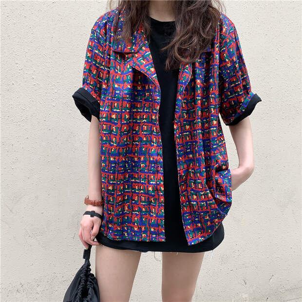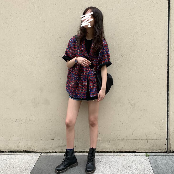 シャツ レディース夏服韓国ファッションルーズスタンダードスタイルカーディガンカラートップス レトロ 夏物 ミドル丈 MONROE7915062