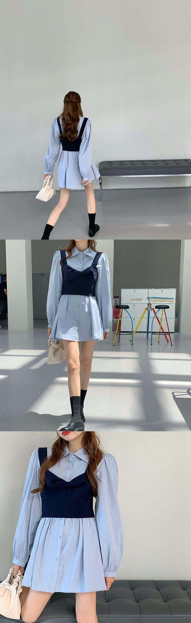 シャツ スカート 秋物韓国ファッションスタイルスリーブルーズトップス ロング オータム 長袖 ミドル丈 MONROE6899206