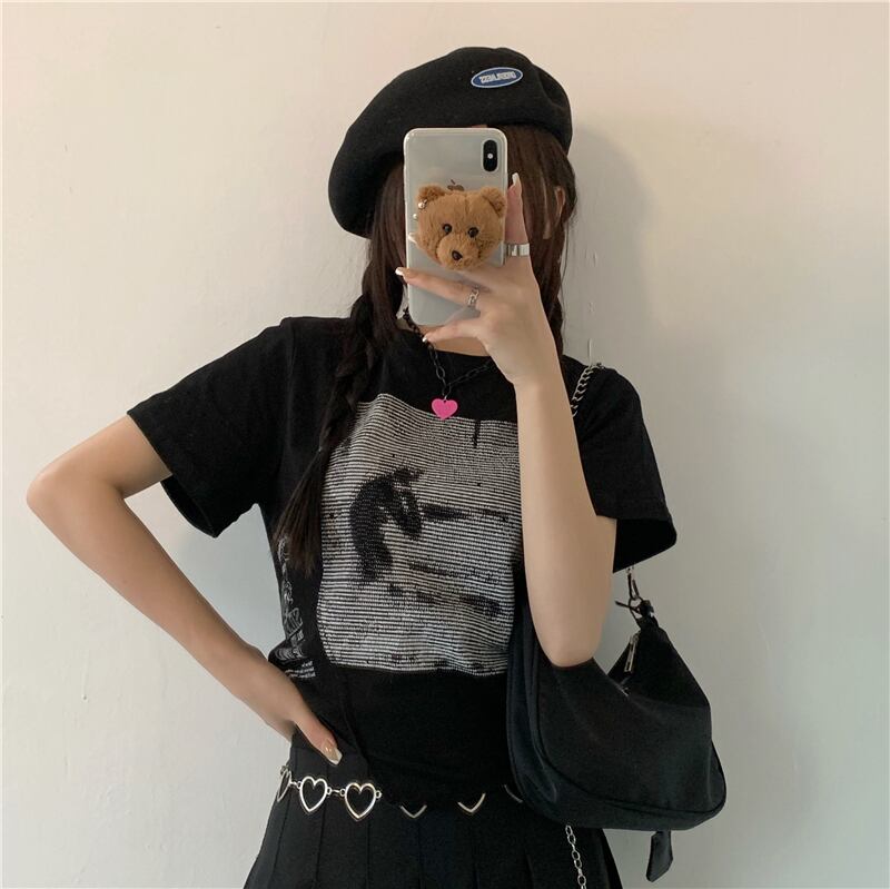 ブラックショートTシャツレディース夏服トップス トレンド 夏物 MONROE57129552614
