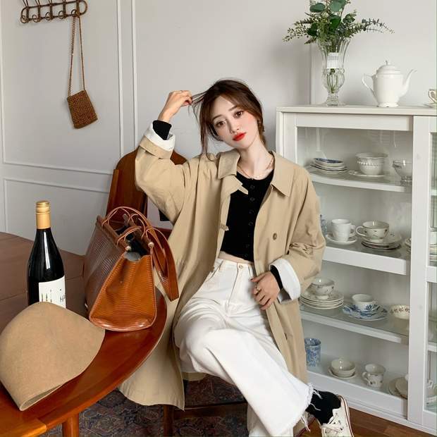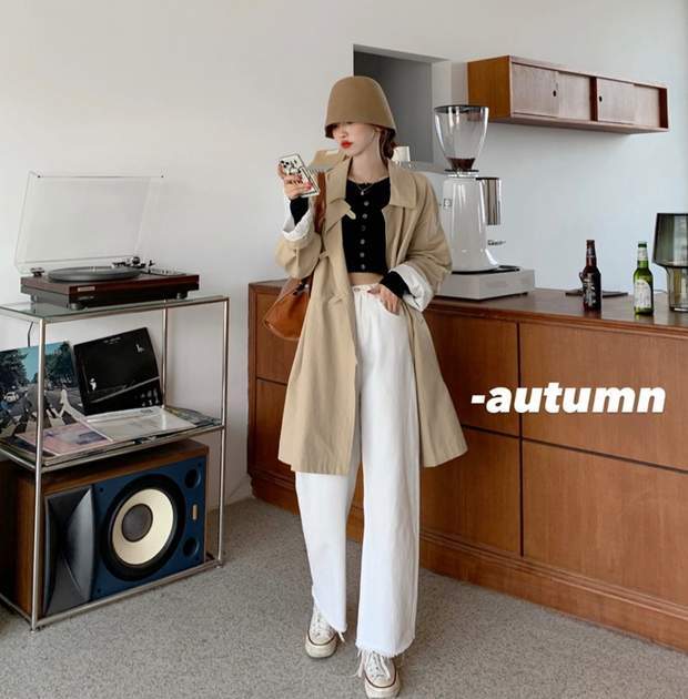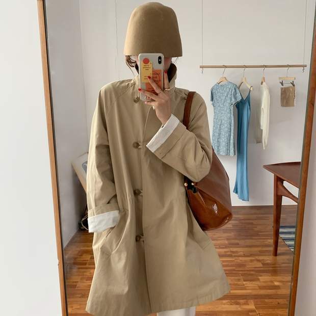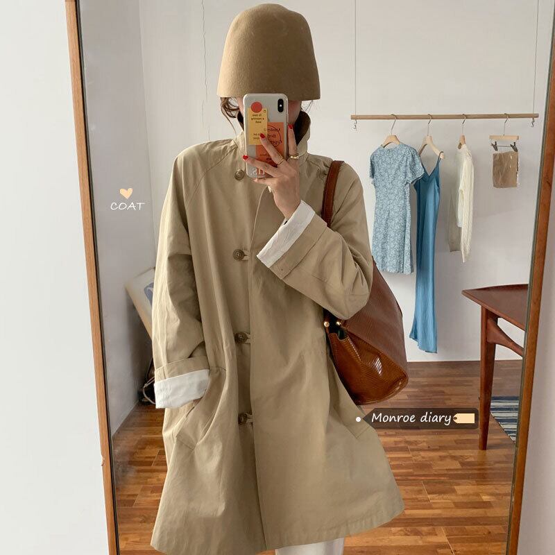 ジャケット 秋物韓国ファッションスタンダードトップス ロング レトロ オータム 長袖 ミドル丈 MONROE21928026166