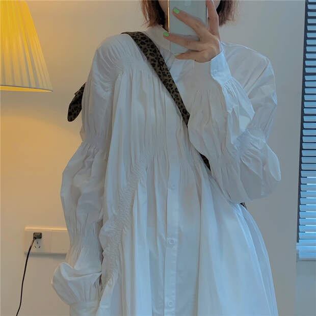 ホワイトスカート 秋物ルーズワンピースハイウェスト ロング オータム 長袖 ウエスト ミドル丈 MONROE4854713