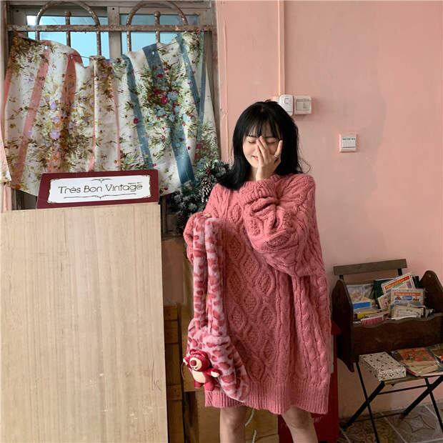 スタイルセーター コート 秋物ルーズ薄手トップス ピンク オータム ミドル丈 MONROE55260604699