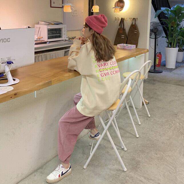 色:アプリコットトップ,コーデュロイピンクのズボン