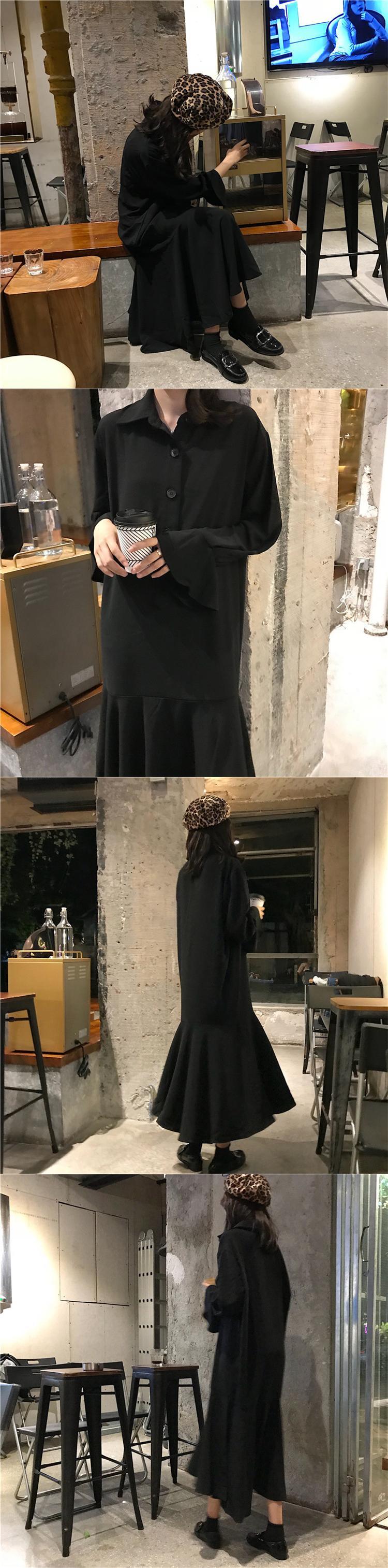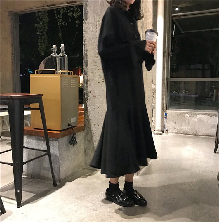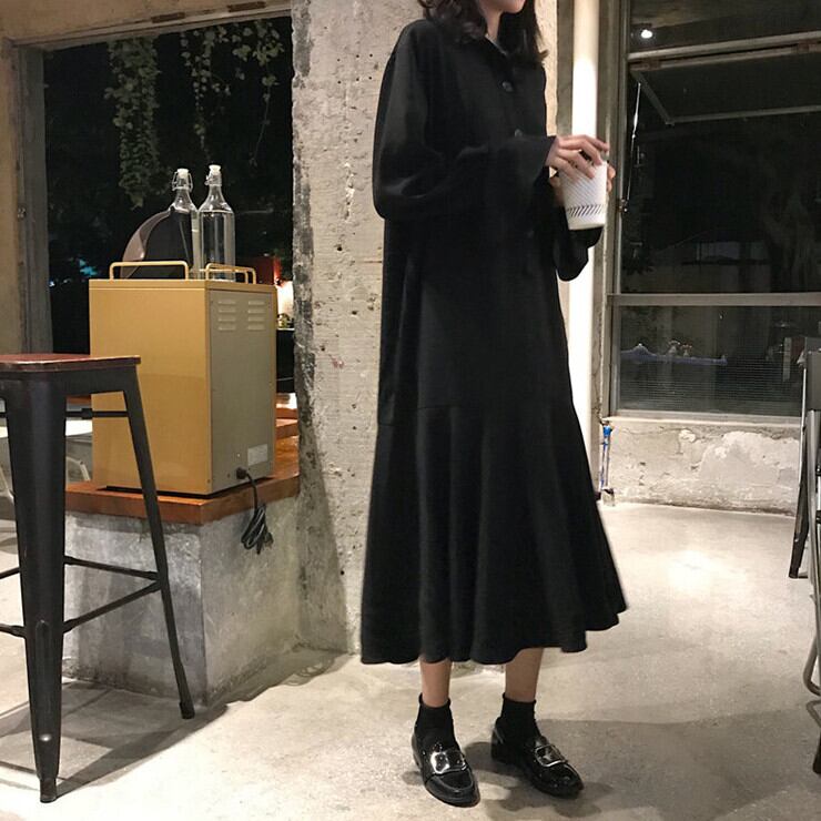 スプリング韓国ファッションスタンダードスカート ルーズ薄手長袖スリーブワンピースレディース ロング レトロ 春物 MONROE5294215
