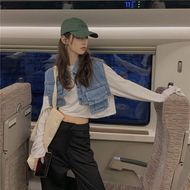 スリムショートジャケット 秋物韓国ファッションノースリーブトップス オータム スタイル ウエスト MONROE61700490601