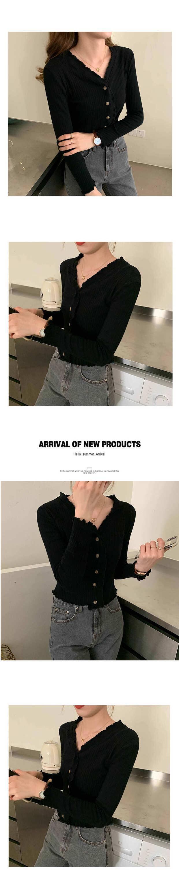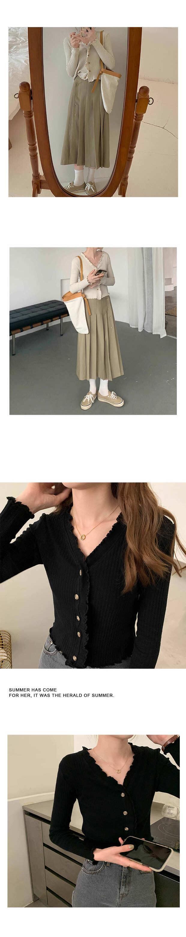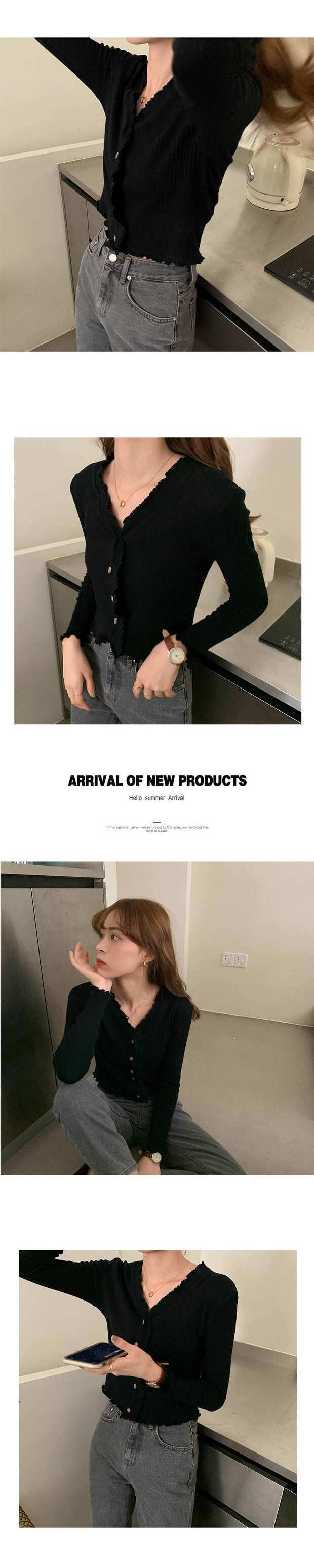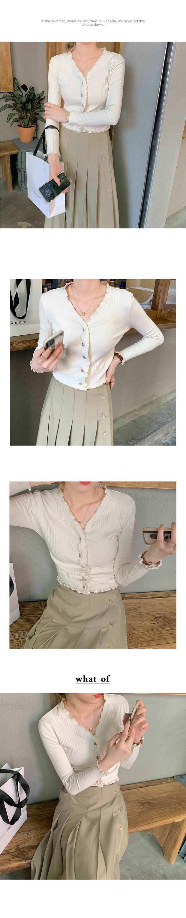 薄手ホワイトセーター カーディガンVネックジャケット 秋物スリムショートトップス ロング オータム 長袖 MONROE78402390516