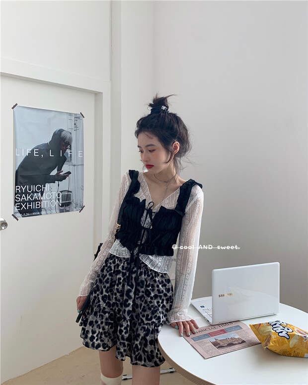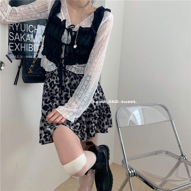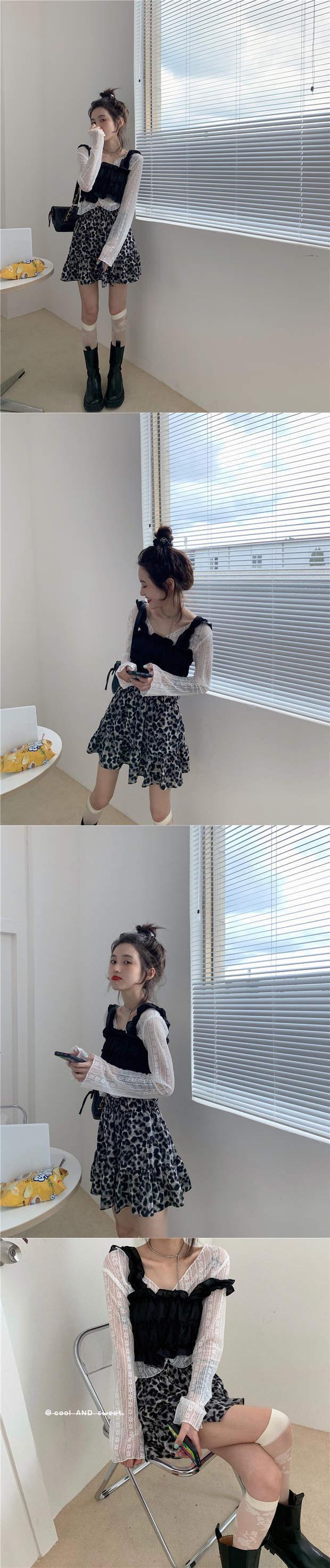 色:レースベース,ブラックサスペンダー,ヒョウスカート