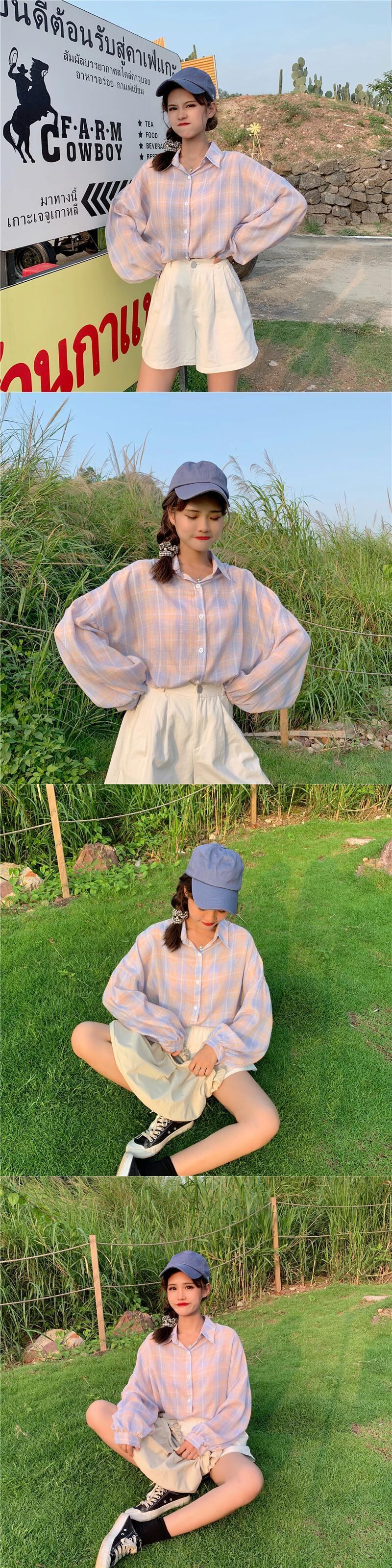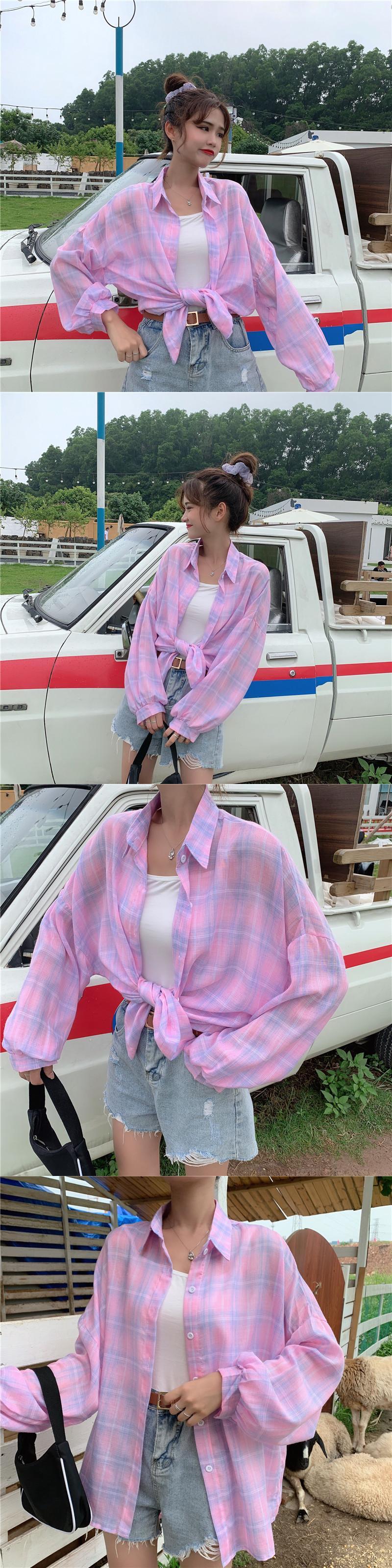 スタイル格子柄シャツ レディース夏服韓国ファッションルーズトレンド ピンク 夏物 YY32827060871