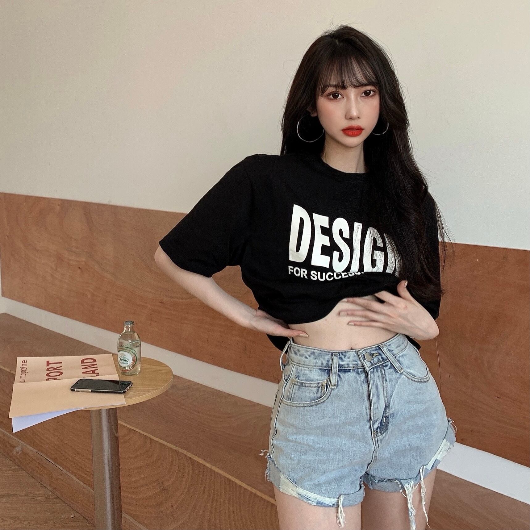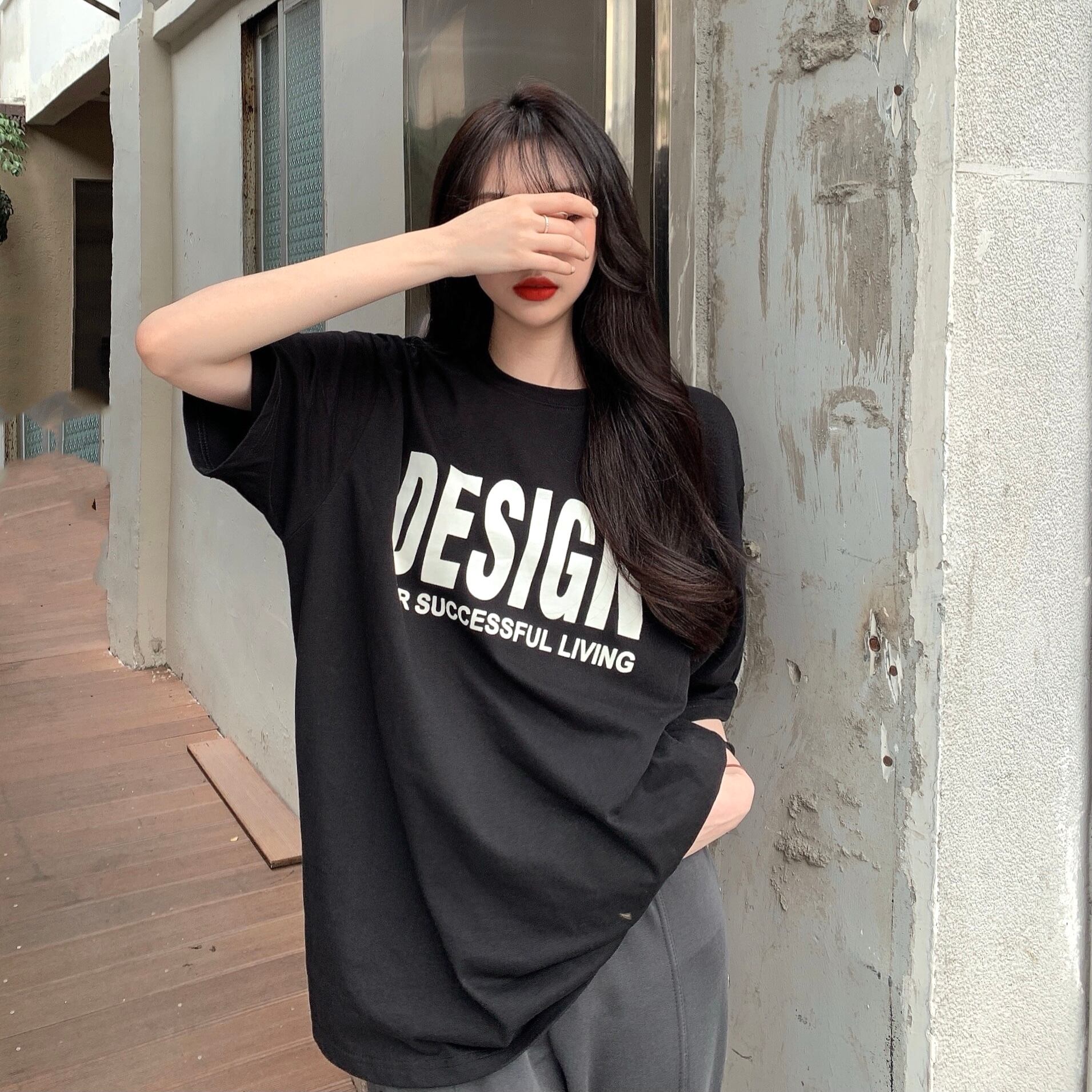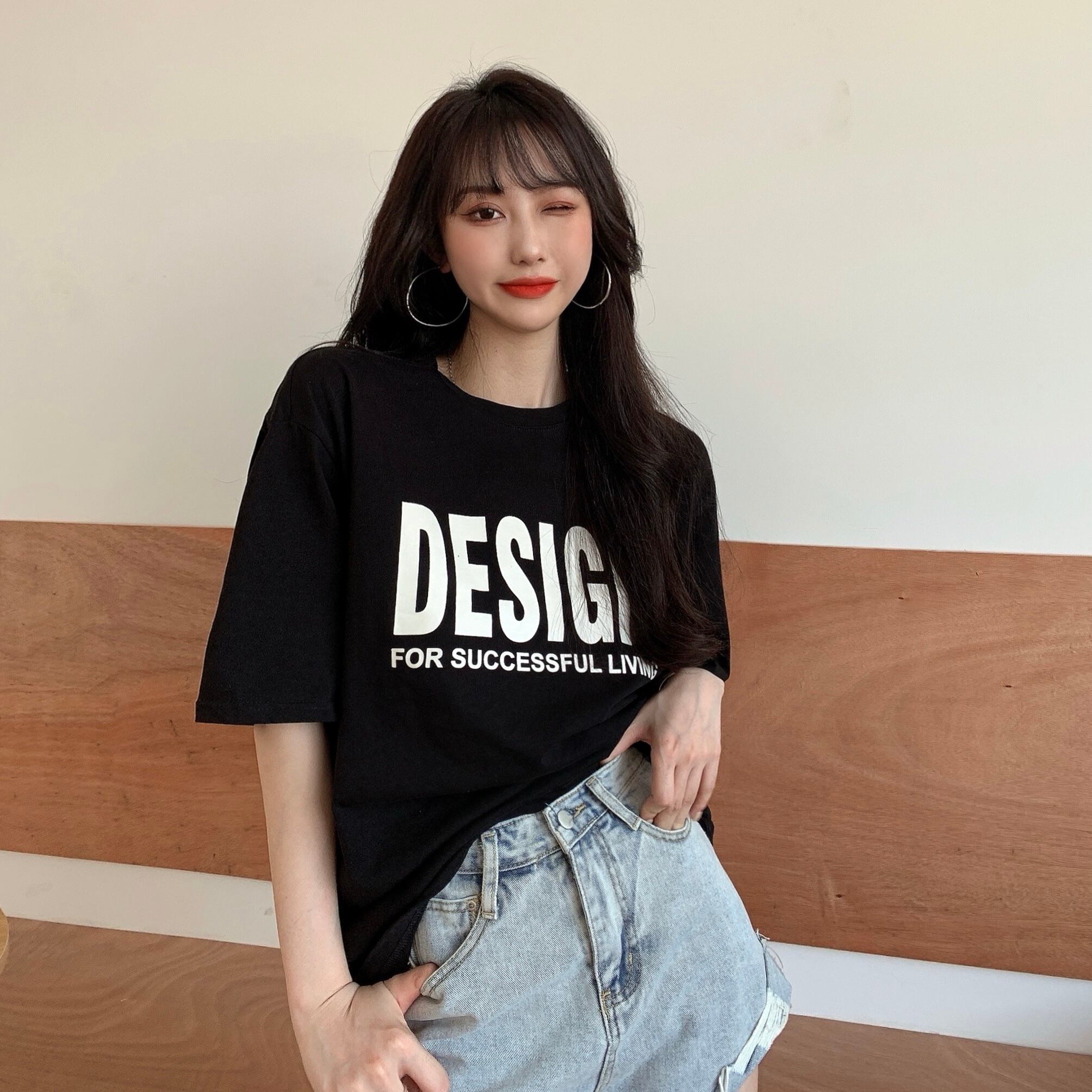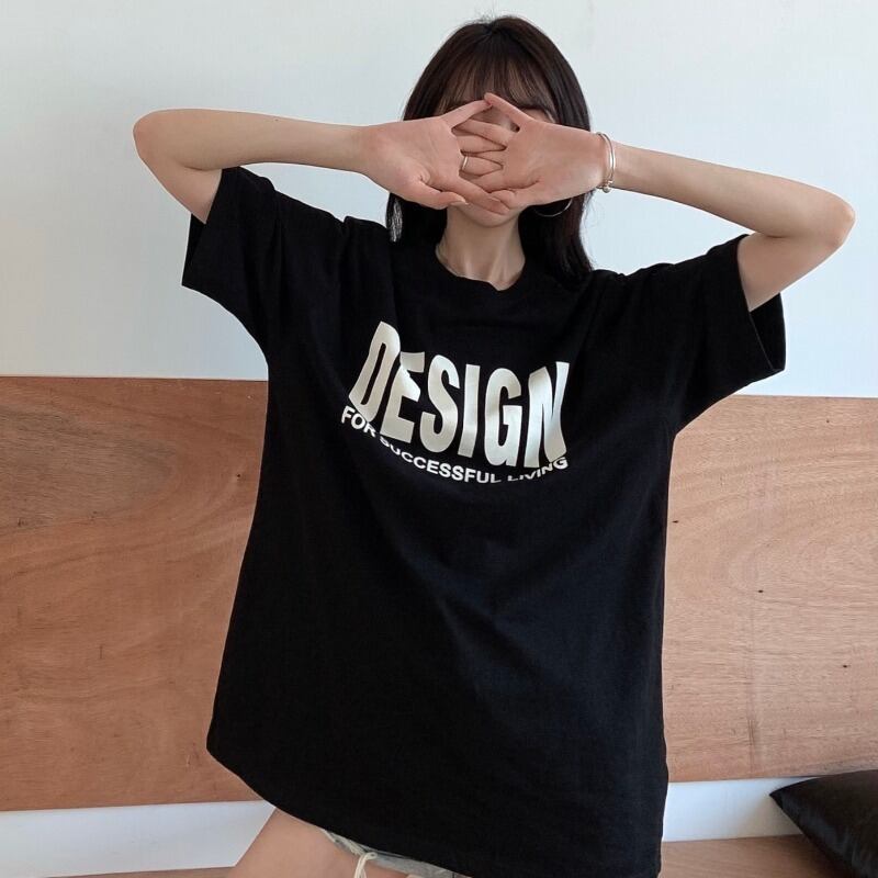 Tシャツレディース夏服韓国ファッションルーズプリントカジュアルブラックトップス 夏物 スタイル ミドル丈 YY4040304330