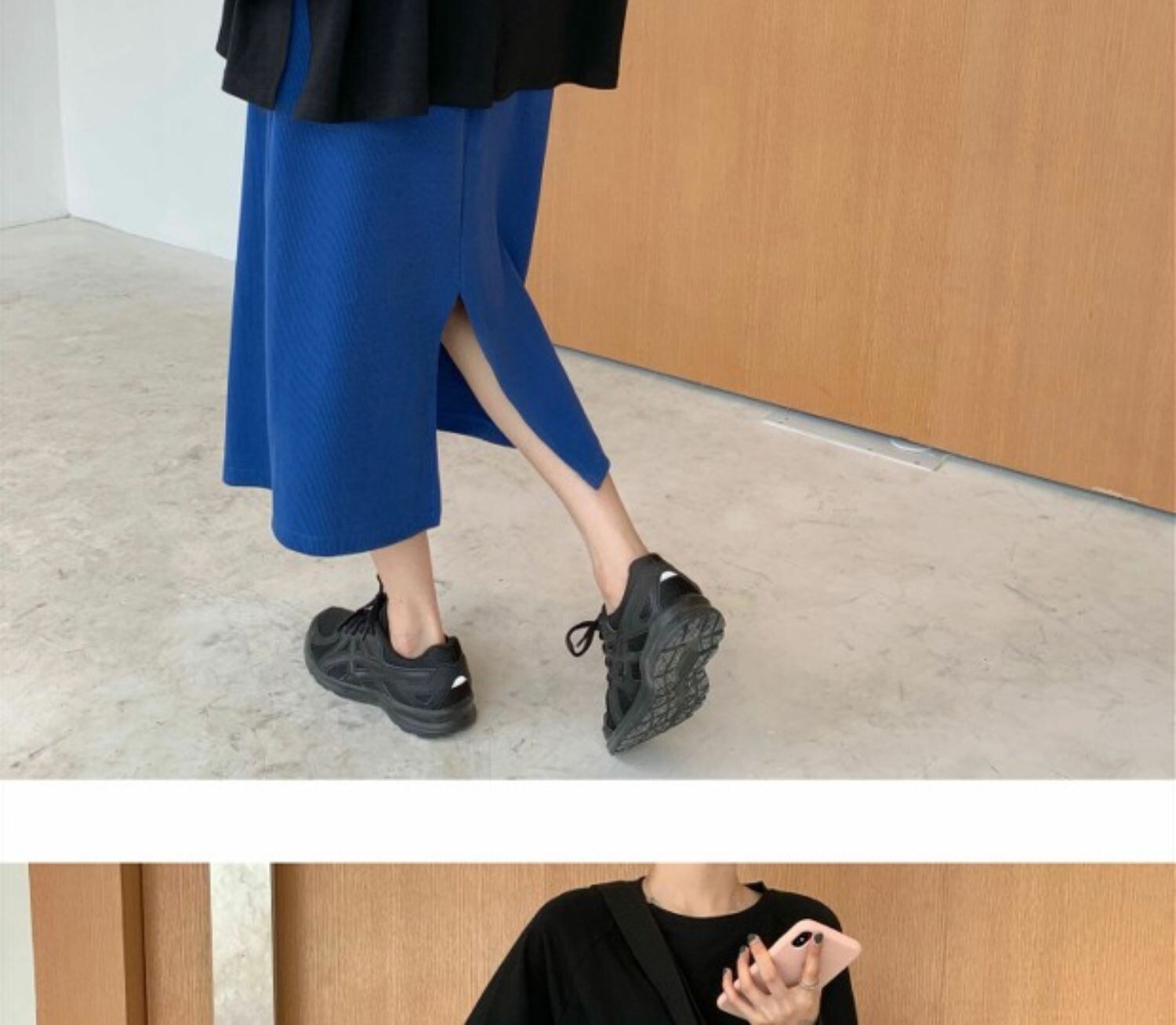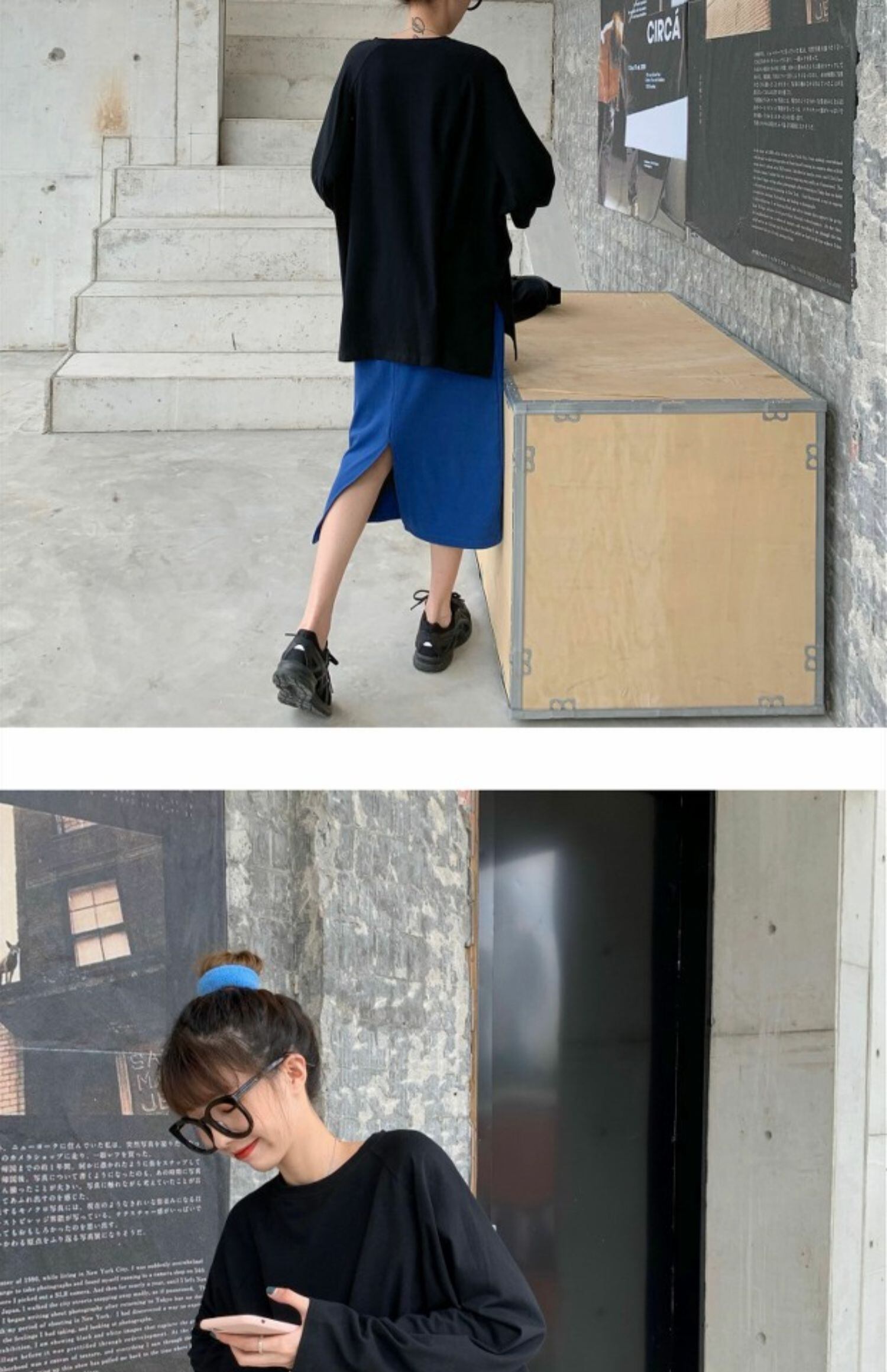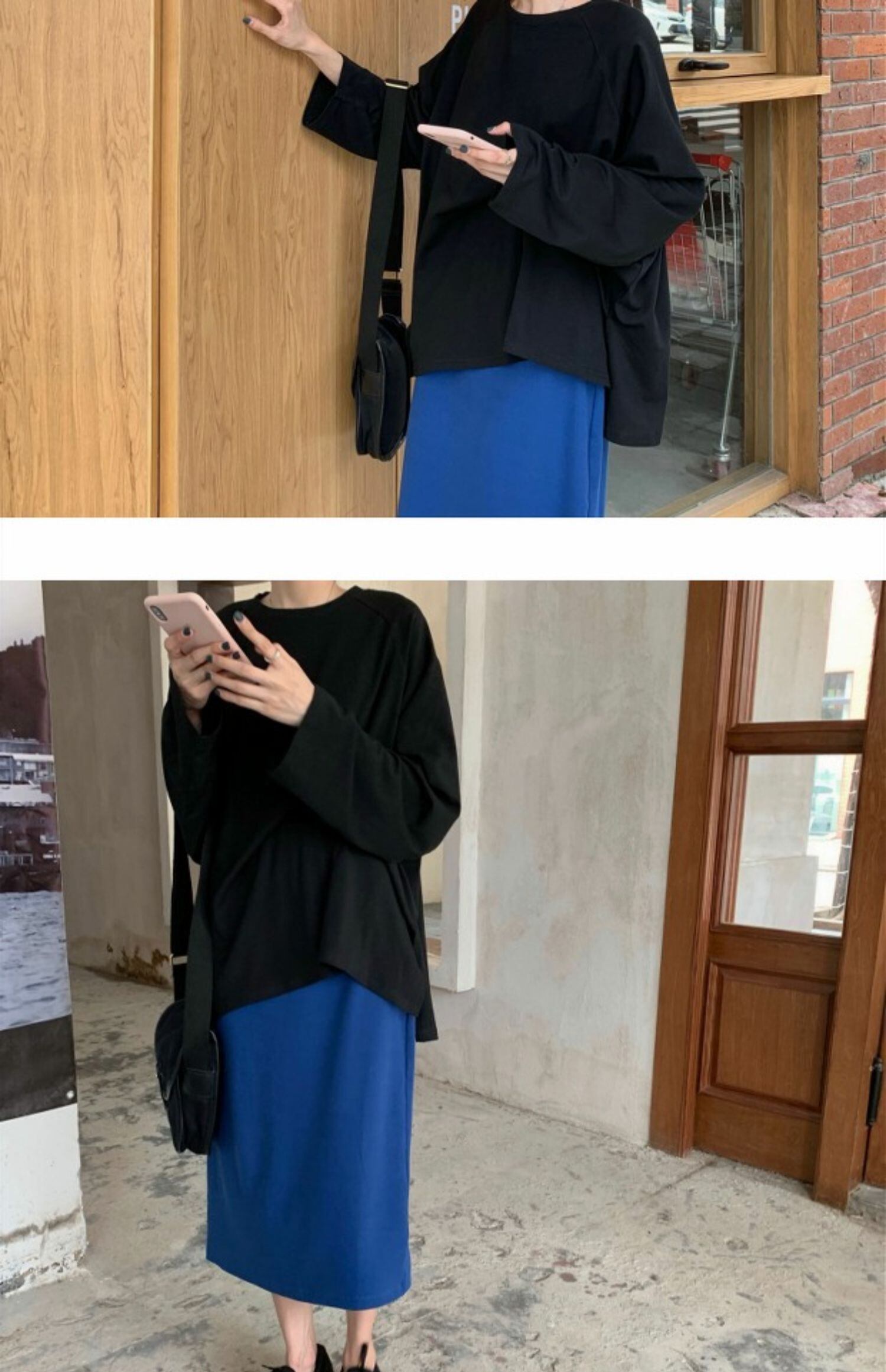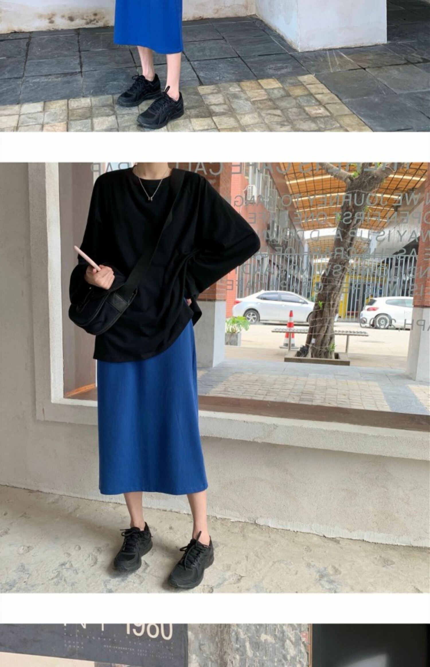 スプリング韓国ファッションスタイルブラウス レディースルーズTシャツシャツ ゆったりハイウェストスカート ロング 春物 長袖 ウエスト MONROE6413889