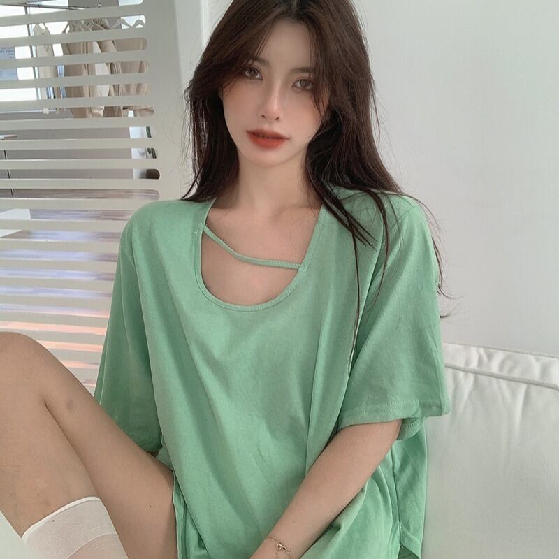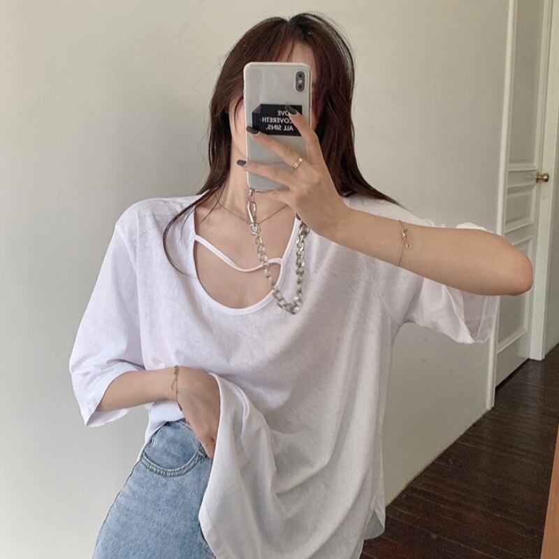 Tシャツ夏服ルーズ韓国ファッションカジュアルトップス トレンド レッド 夏物 スタイル ミドル丈 YY88570935166