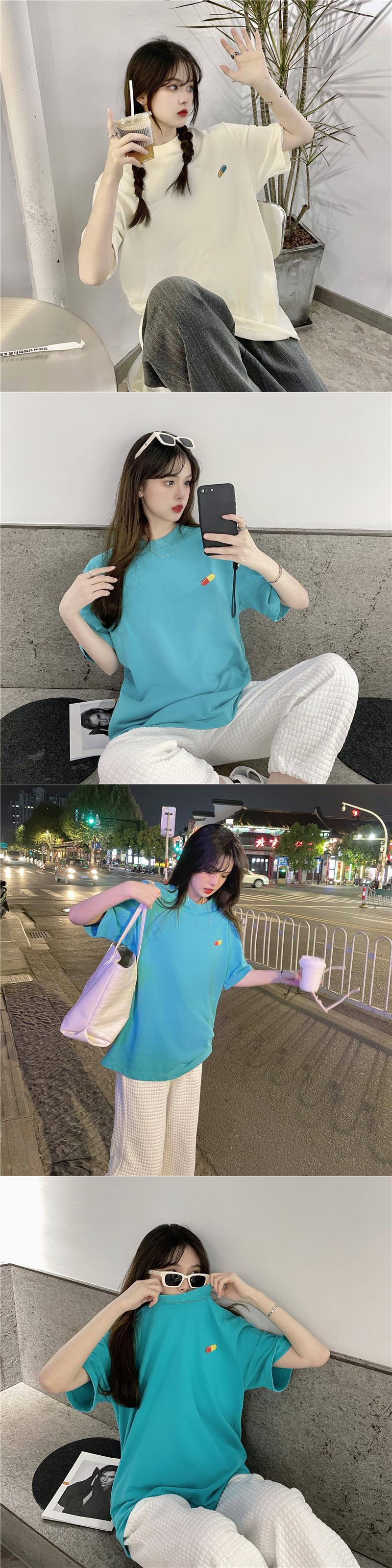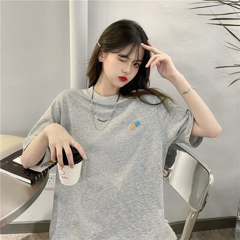 夏服韓国ファッションルーズラウンドネックTシャツシャツ レディースゆったりトレンド 夏物 Oネック ミドル丈 YY61090890424