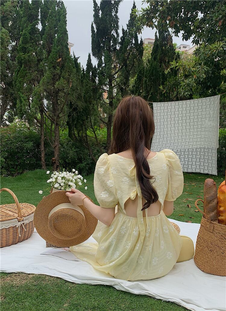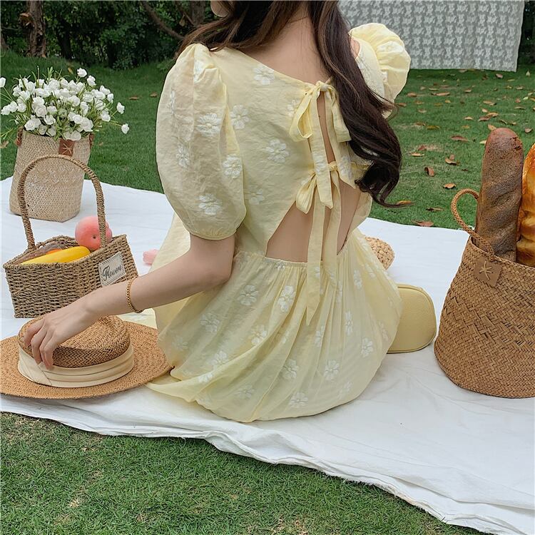 バックミニ ワンピースワンピースレディース夏服スタイル韓国ファッションウェストスカート レース 夏物 レースアップ スクウェア ウエスト ミドル丈 YY94615965661