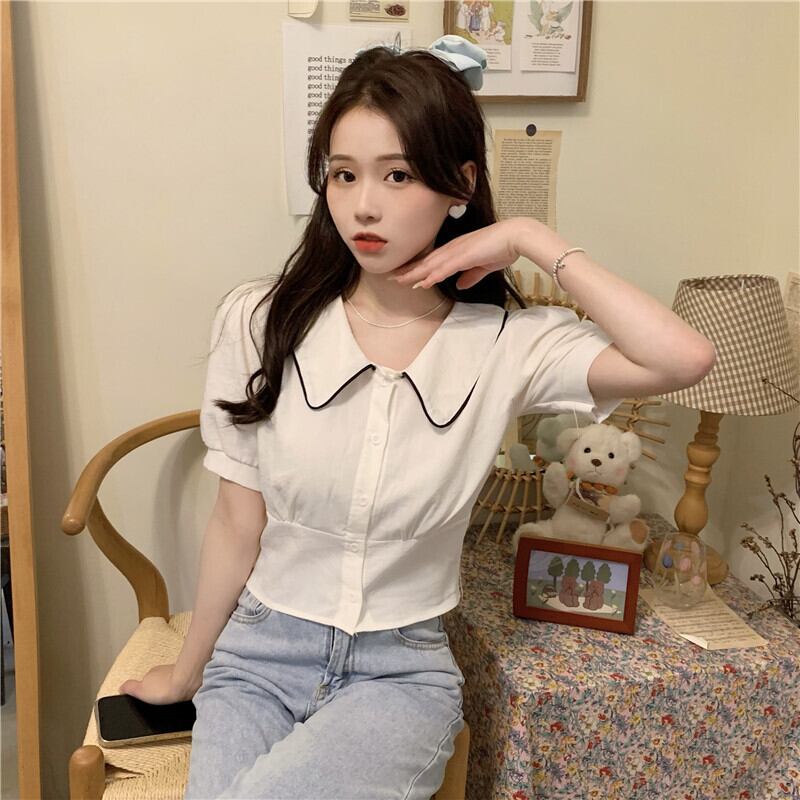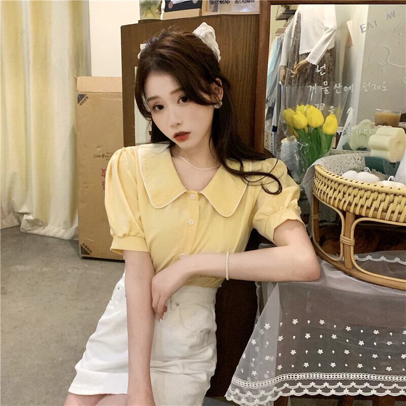 夏服韓国ファッションスタイル薄手カラースリーブシャツ レディースショートトレンド 夏物 YY2059721463