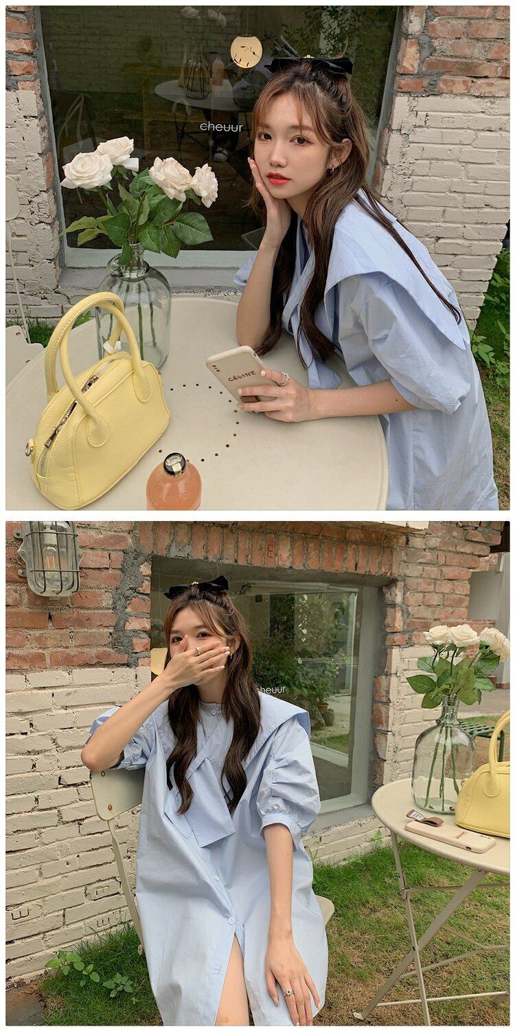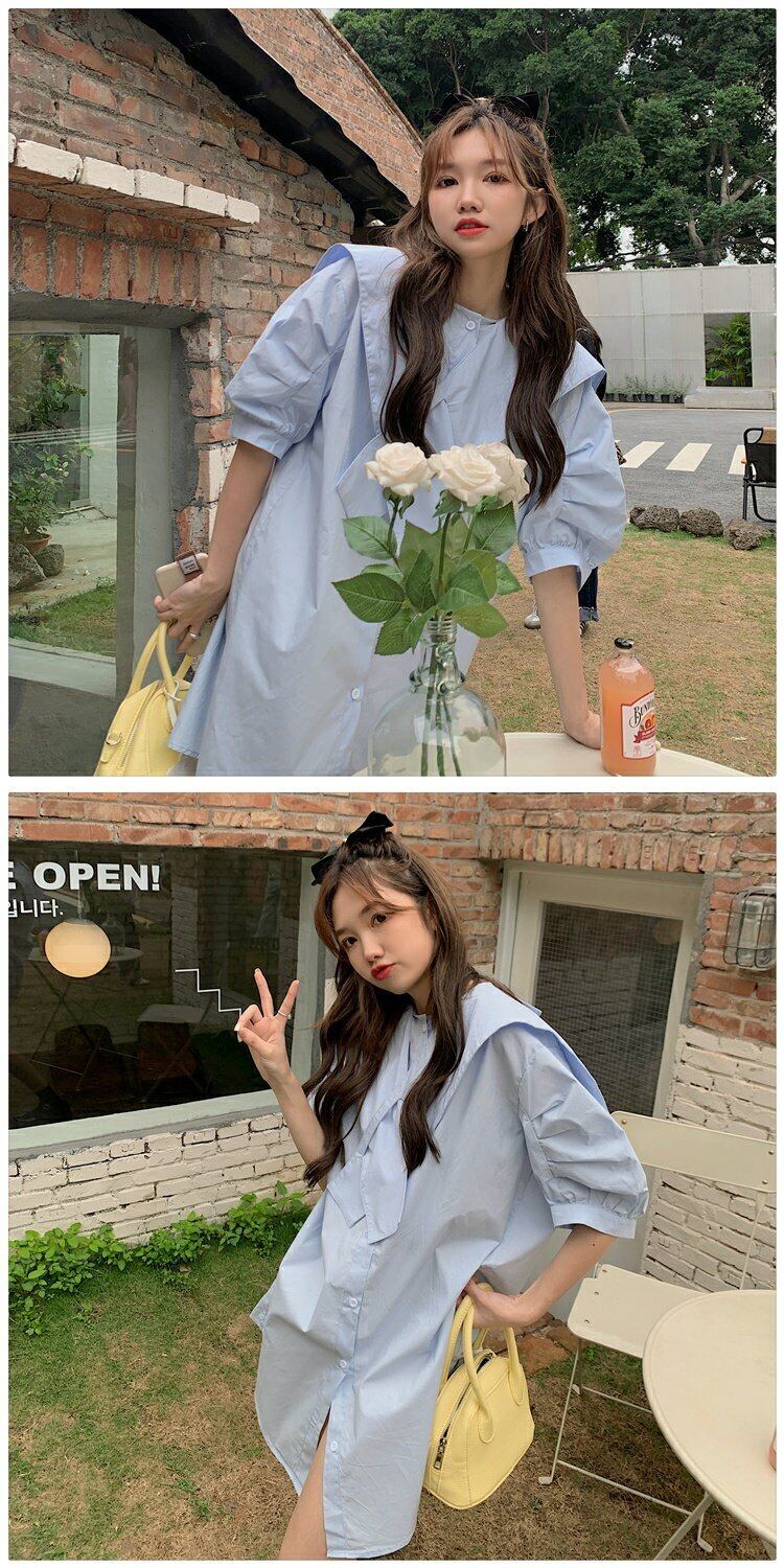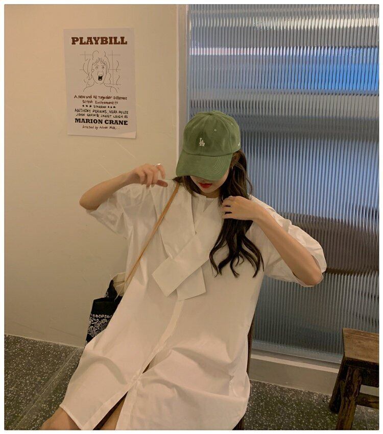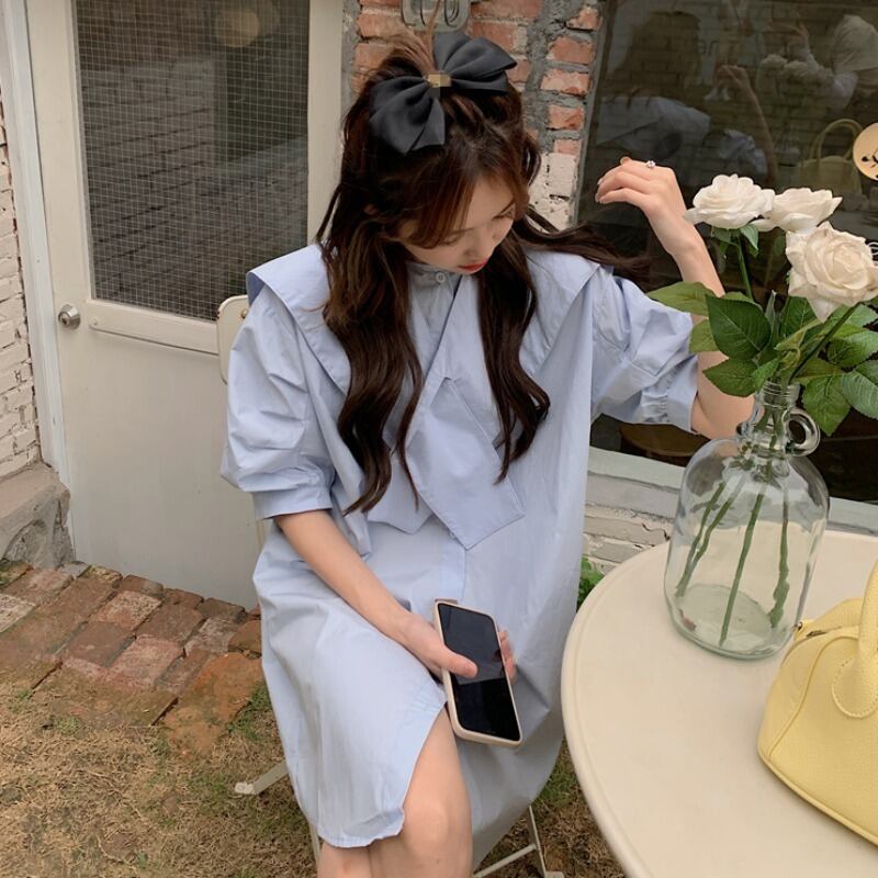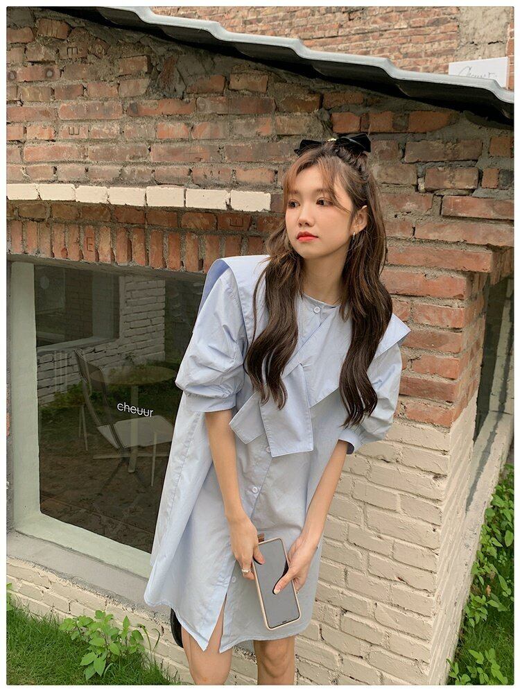 夏服韓国ファッションネイビーカラールーズシャツ トップス レディース 大きめサイズ 夏物 スタイル ミドル丈 YY75552184273