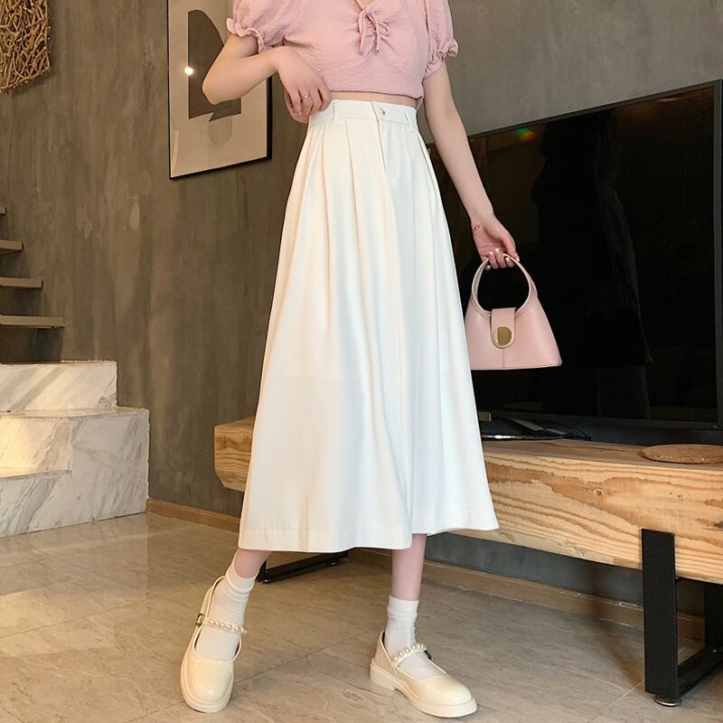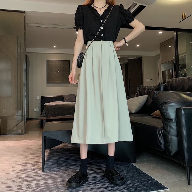 スカート レディースAライン夏服ハイウェストブラックロング 夏物 ウエスト ミドル丈 SYJ73703609961