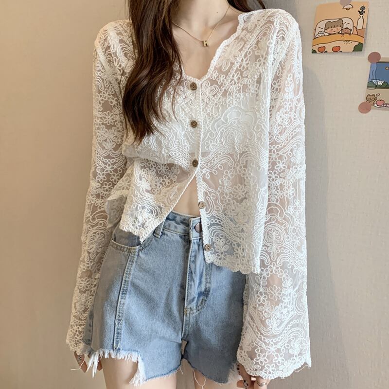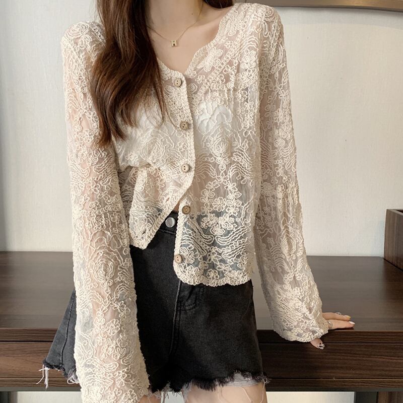 薄手夏服シャツ レースショールジャケット スタイルショートトップス ロング 夏物 長袖 SYJ50763071362