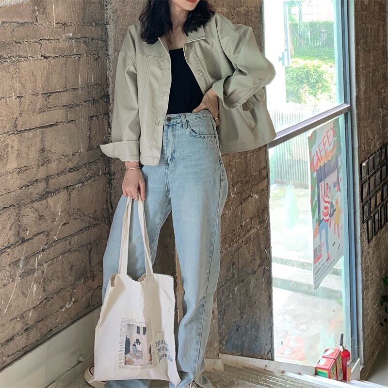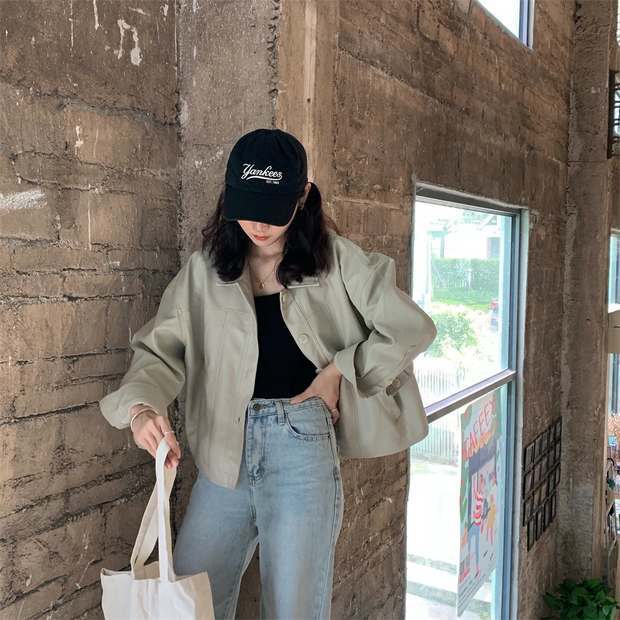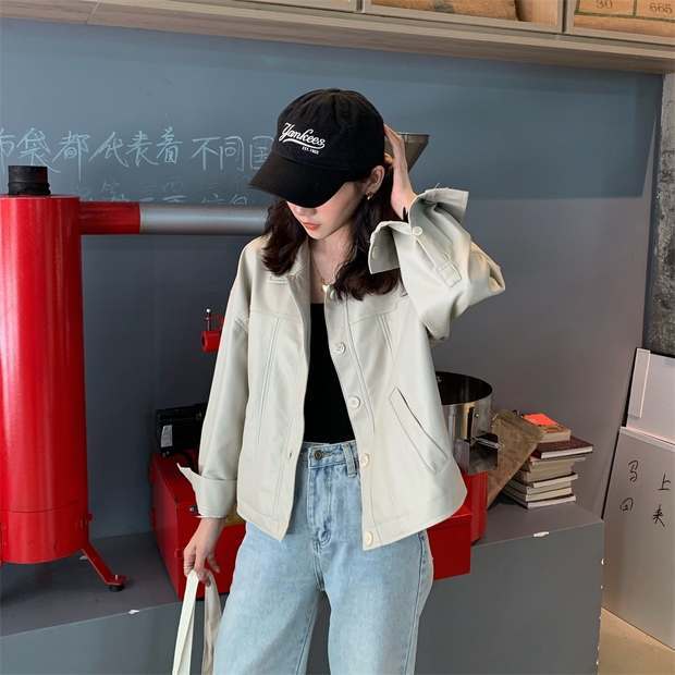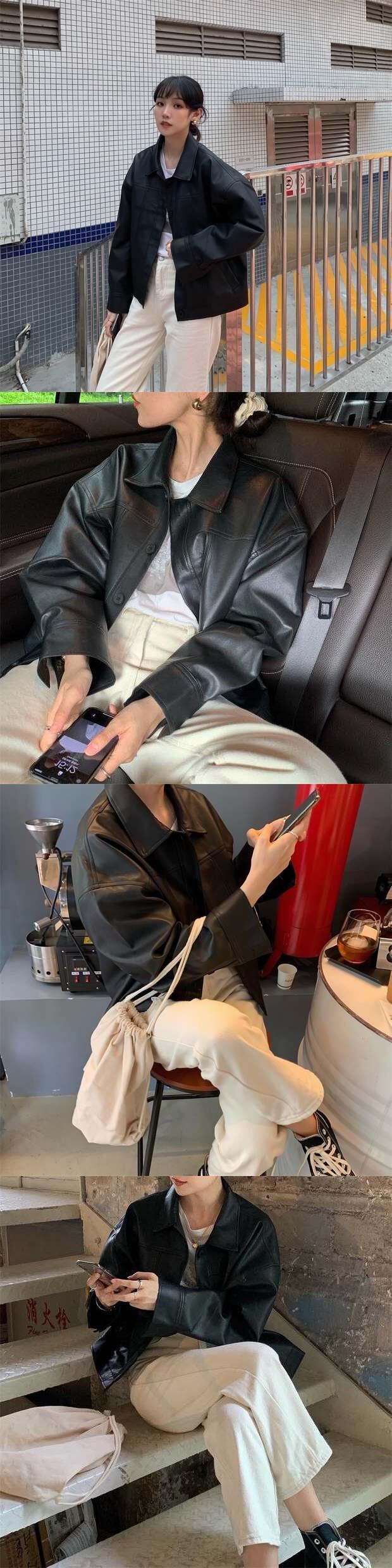 レザージャケット 秋物韓国ファッションスタイルルーズトップス オータム ミドル丈 MONROE60630740763