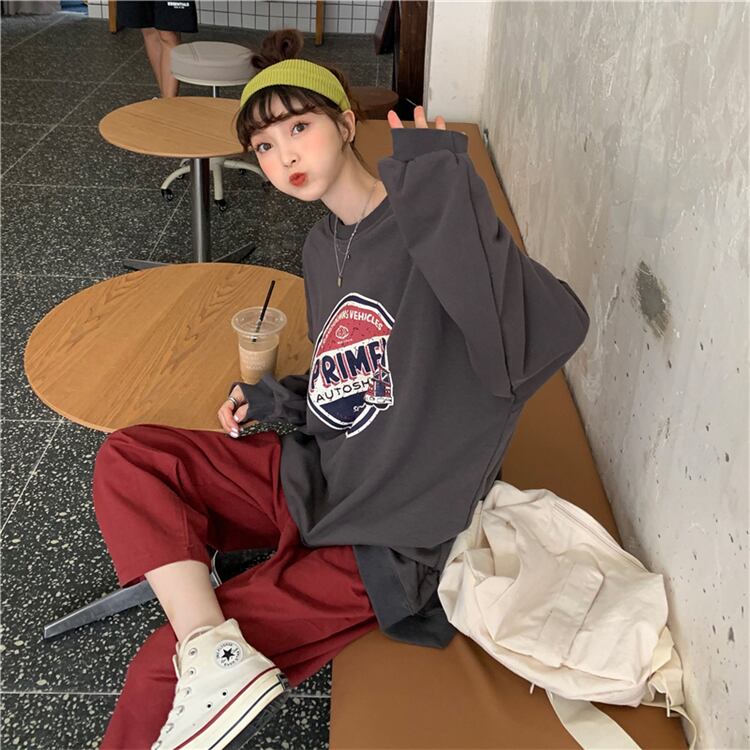 スタイルプルオーバー セーター コート 秋物ルーズプリント柄トップス ロング オータム 長袖 ミドル丈 MONROE74598771500