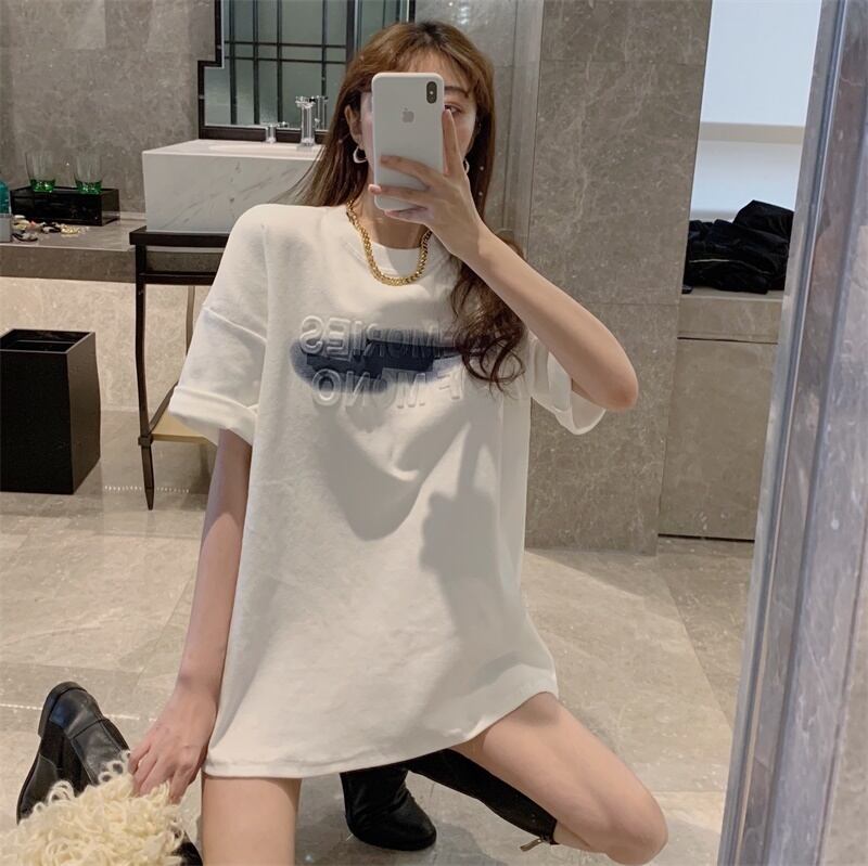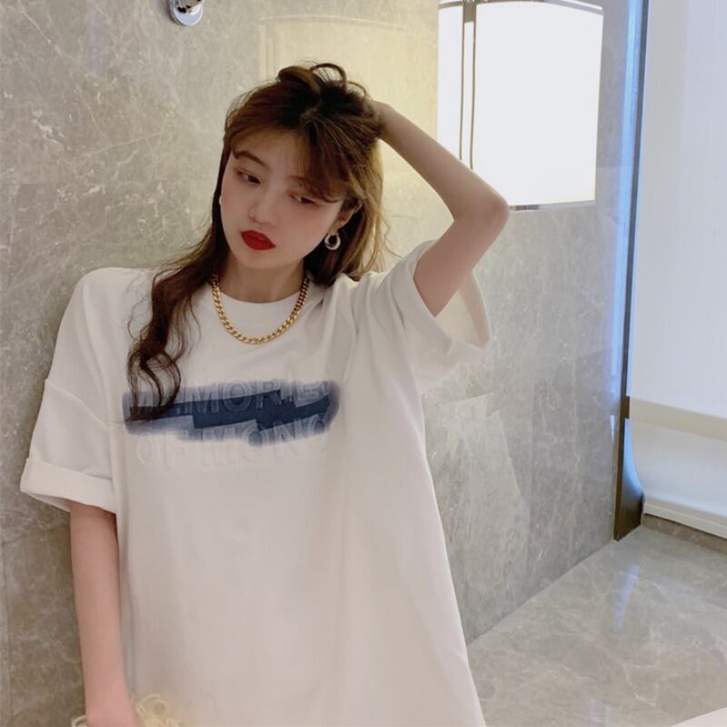 スタイルゆったりシャツ 夏服韓国ファッションホワイトルーズTシャツレディース 夏物 ミドル丈 SYJ1260774102