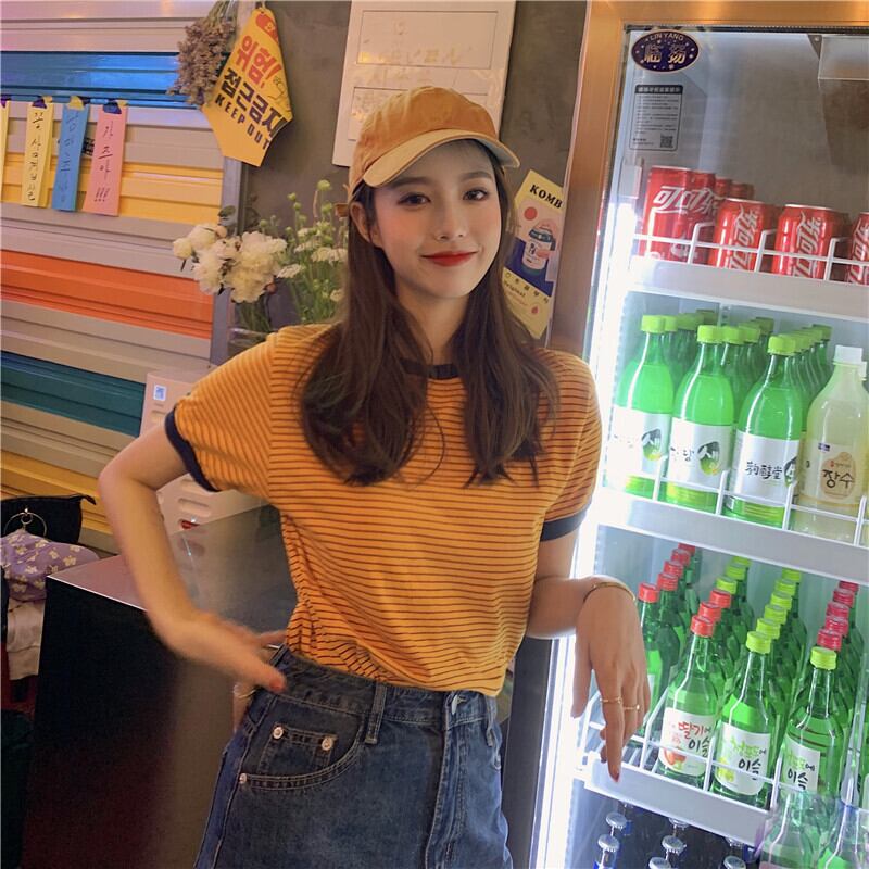 夏服韓国ファッションストライプTシャツシャツ トレンドブラウス スタイルゆったり 夏物 SYJ15128548491
