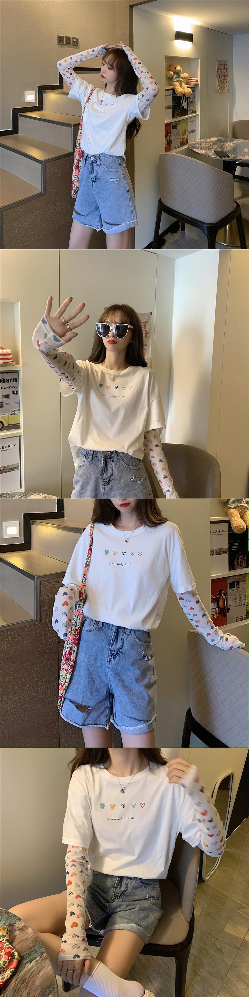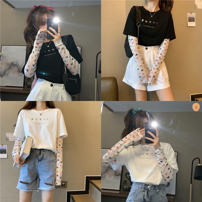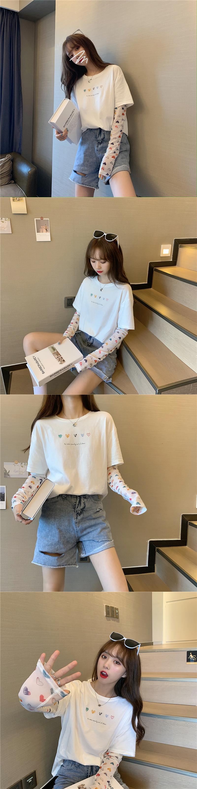 ツーピースメッシュプリントTシャツレディース韓国ファッションルーズトップス ロング ステッチ 長袖 YY24463749931