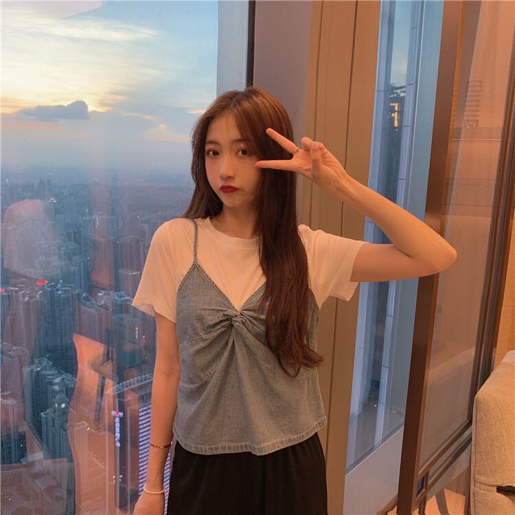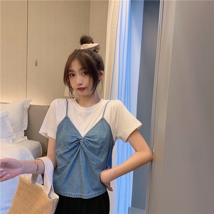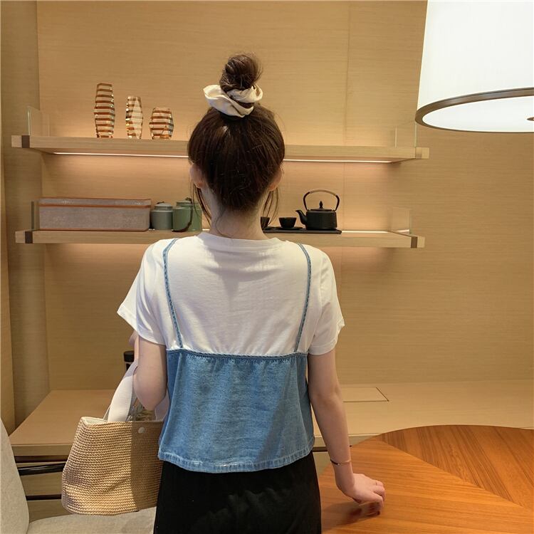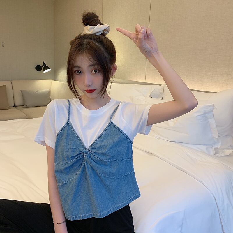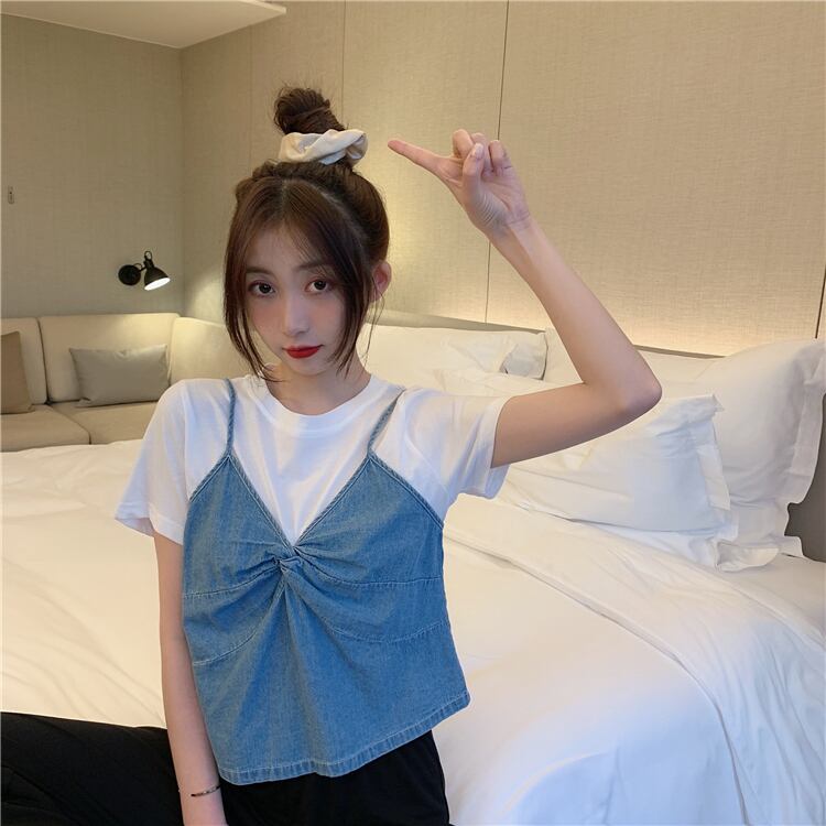 夏服スタンダードショートトップス ラウンドネックスリムTシャツレディース レトロ 夏物 Oネック ステッチ YY31064658647