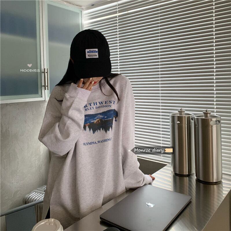 トレンドプリント柄薄手セーター コート 秋物ルーズトップス ロング オータム 長袖 ミドル丈 MONROE91268828175