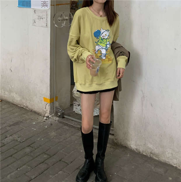 プリント柄セーター コート 秋物ルーズトップス オータム ミドル丈 MONROE35905911054