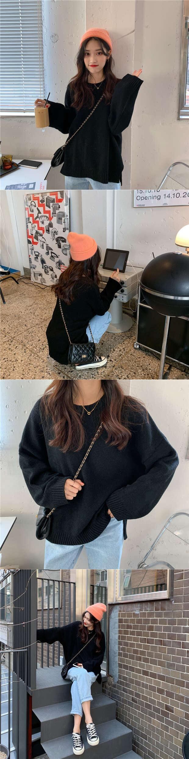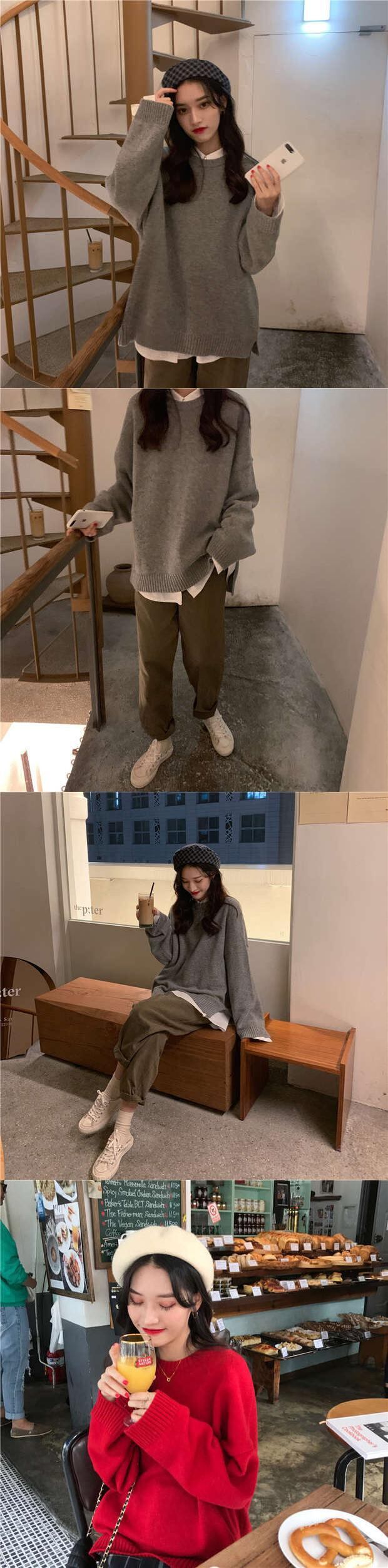 スタンダードレッドプルオーバー セーター ジャケット スプリングルーズスリットトップス ロング レトロ 春物 長袖 ミドル丈 MONROE51197244950