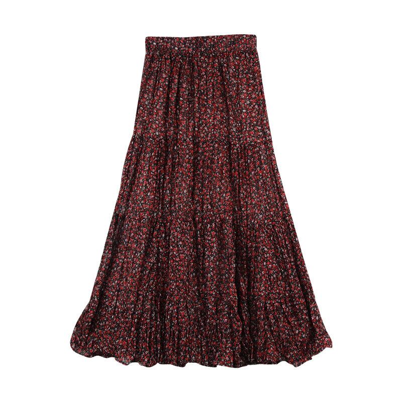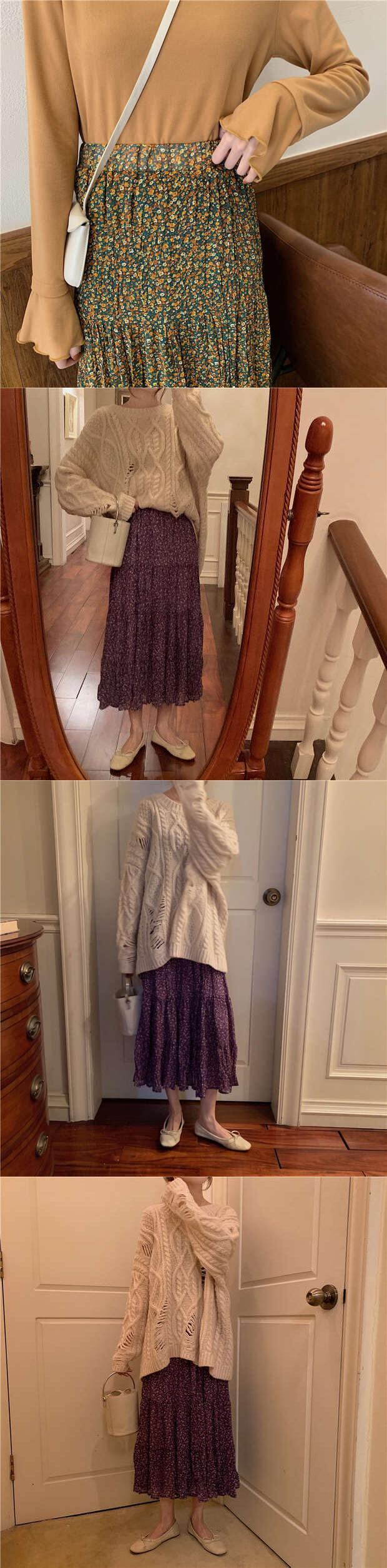 秋物韓国ファッショントレンドルーズフローラルスカート ハイウェストウェストレディースAライン オータム 花柄 スタイル ウエスト ミドル丈 MONROE77174530774