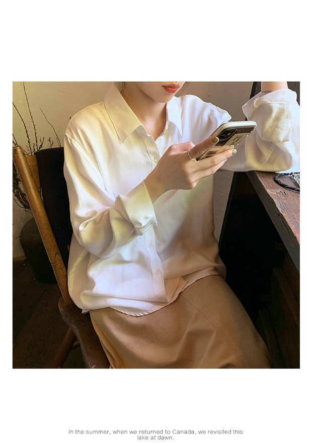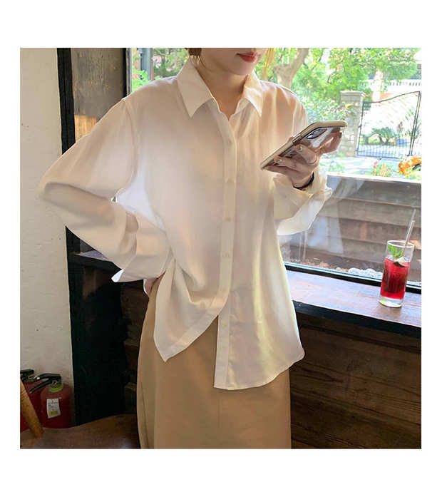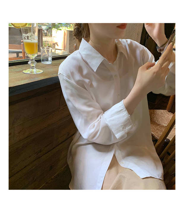 ホワイトシャツ スプリングルーズ韓国ファッション ロング 春物 長袖 ミドル丈 MONROE25202547838